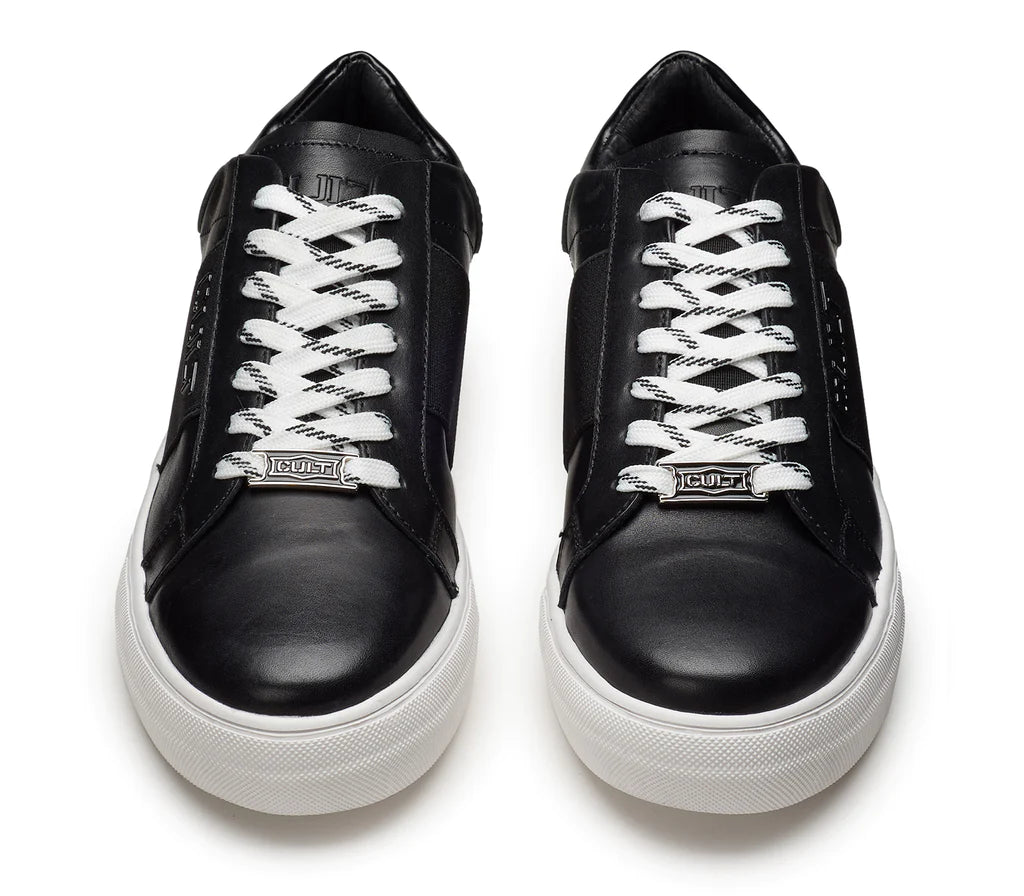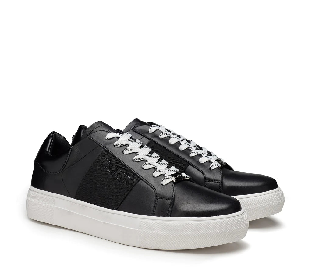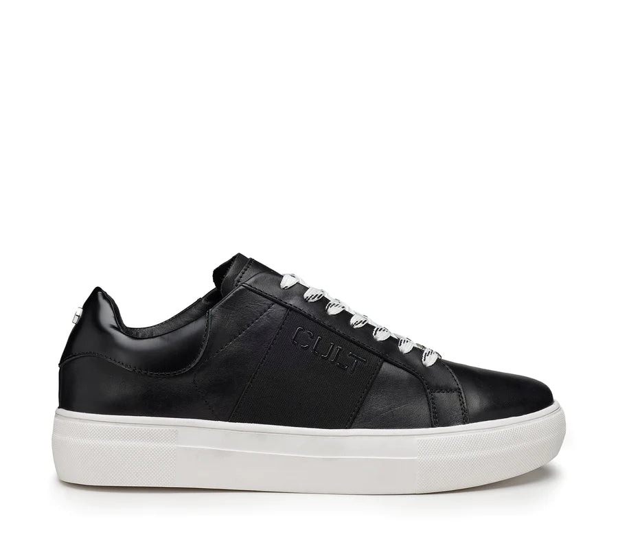 La Sneaker firmata Cult, della linea Lemmy è realizzata in pelle nera e banda posteriore a contrasto, sarà un partner perfetto da indossare sotto jeans o pantaloni più classici per un effetto più informal.