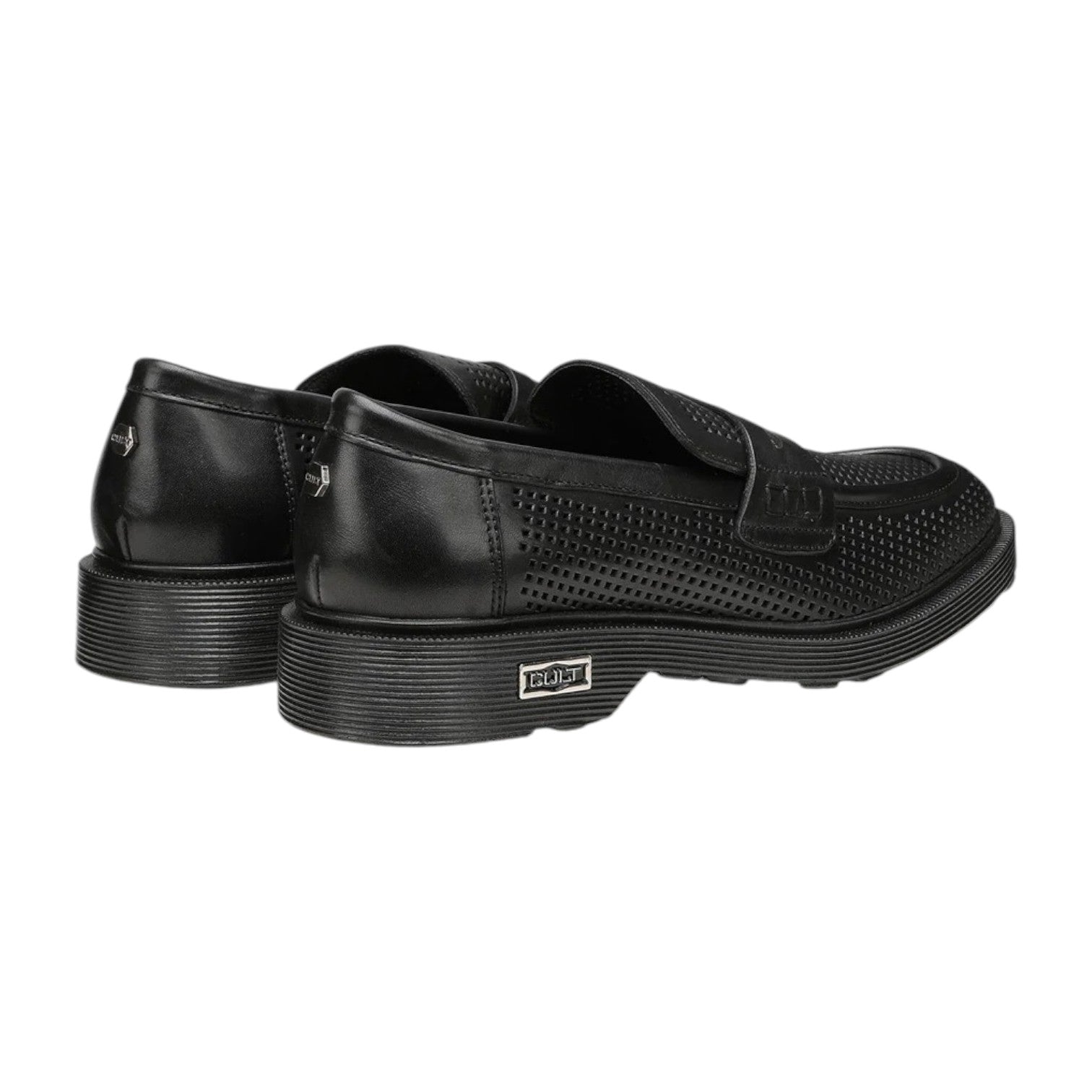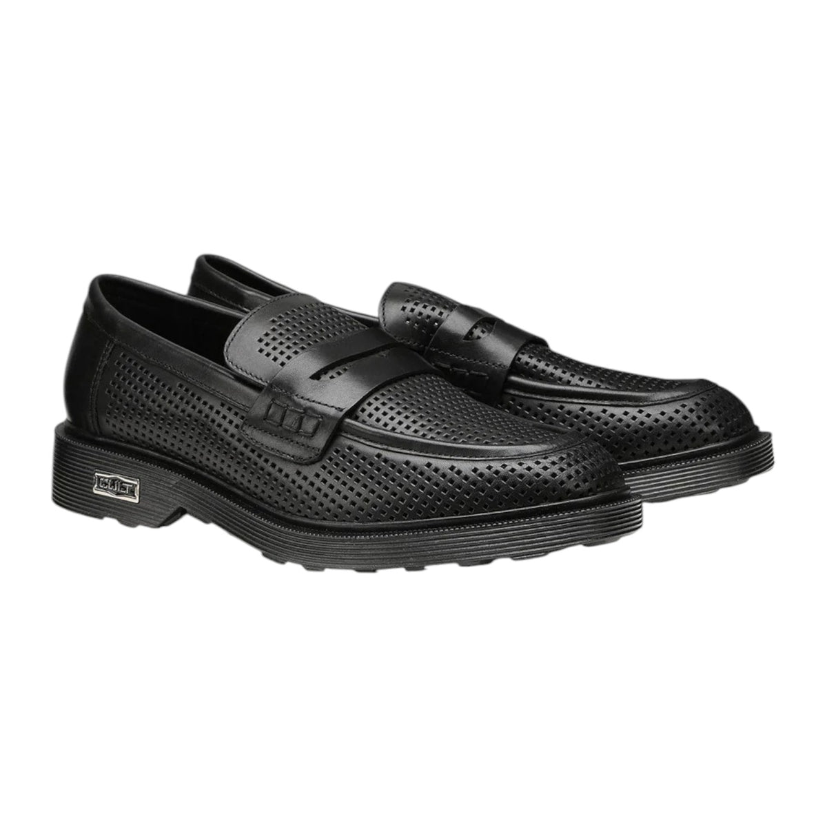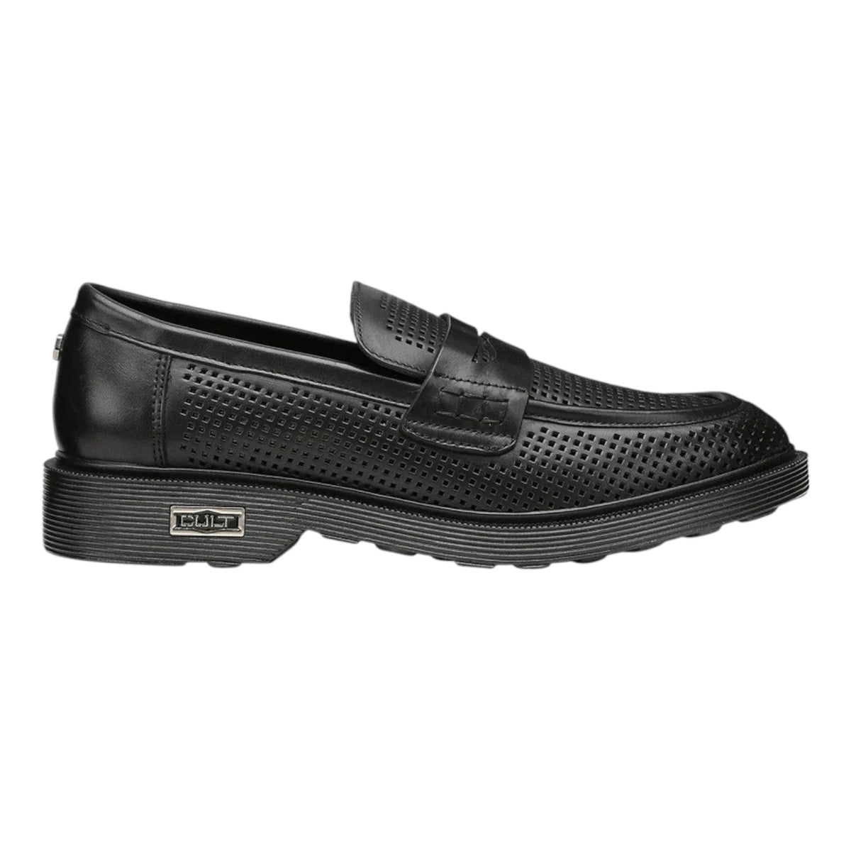 Cult Mocassino Nero Traforato in Pelle da Uomo