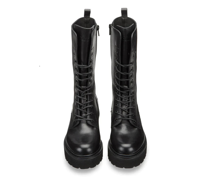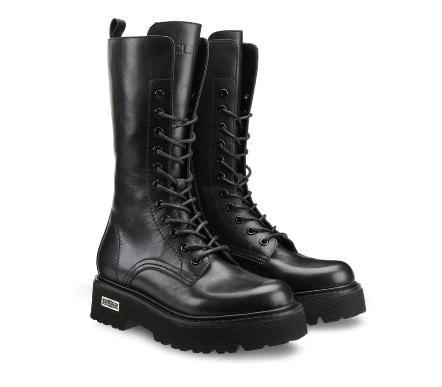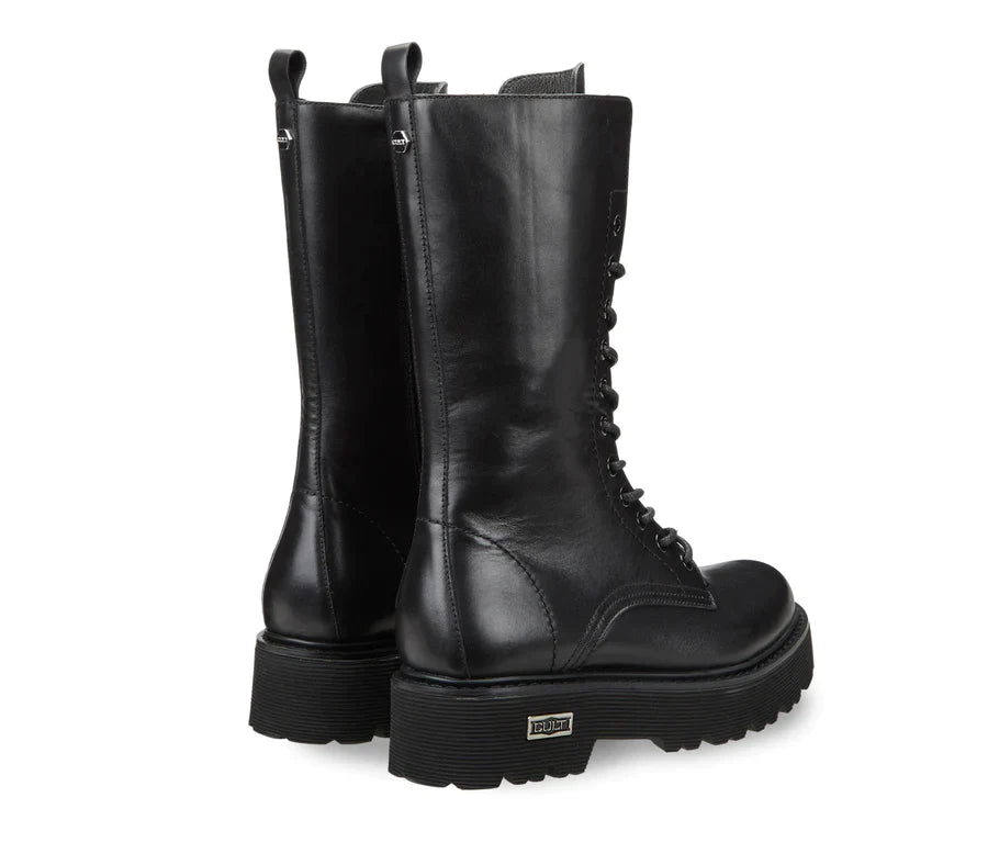 Comodi e dalla linea urban chic questi stivali firmati Cult. In pelle nera, con chiusura tramite stringhe su occhielli tono su tono, questi stivali saranno il complemento perfetto dei vostri outfit invernali.