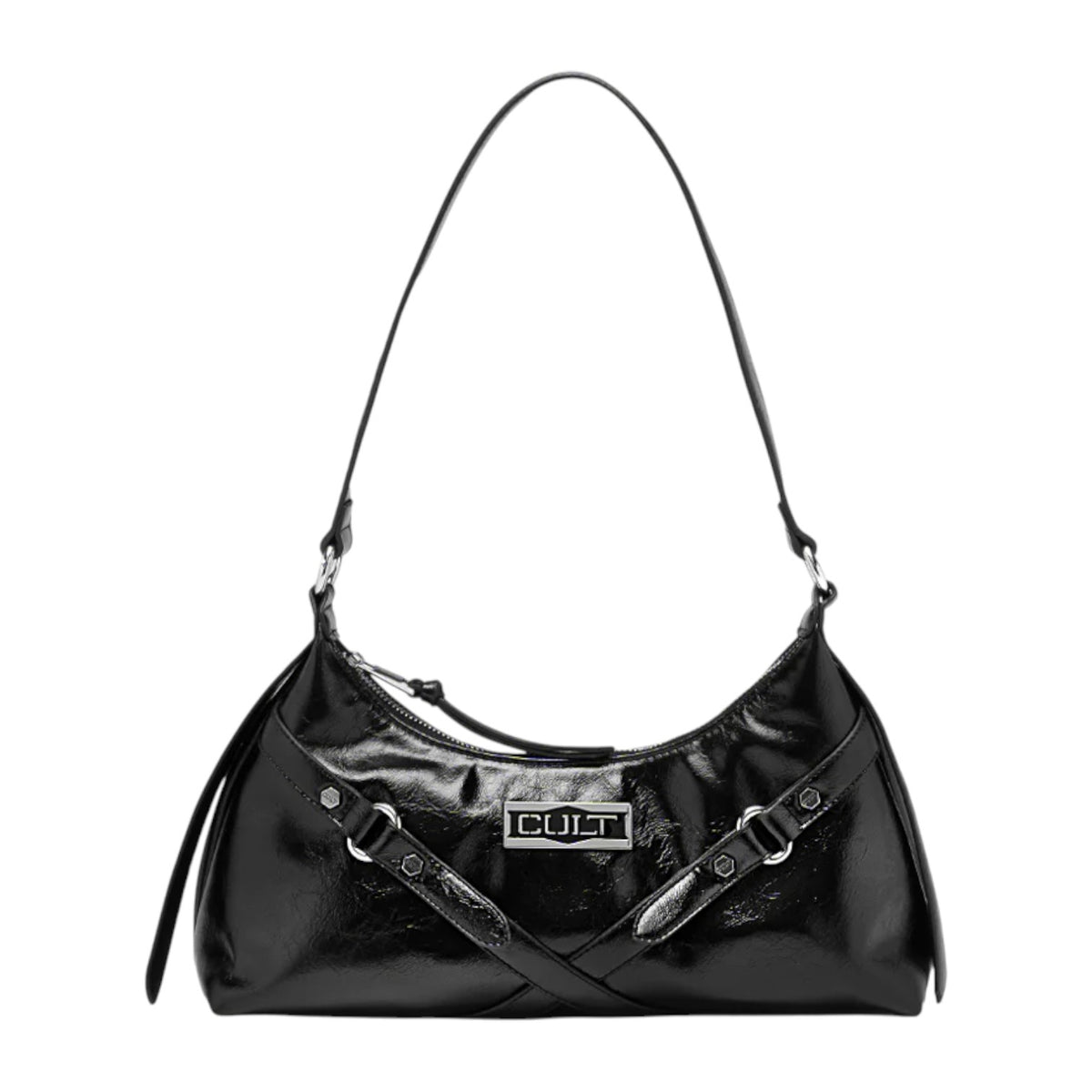 Cult Borsa a Spalla Donna Amy in Ecopelle Nera Lucida