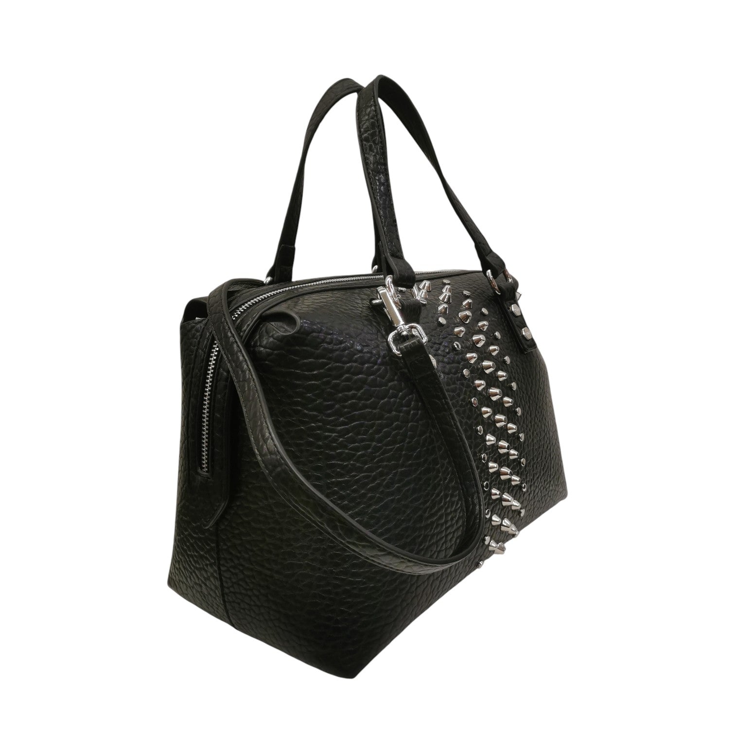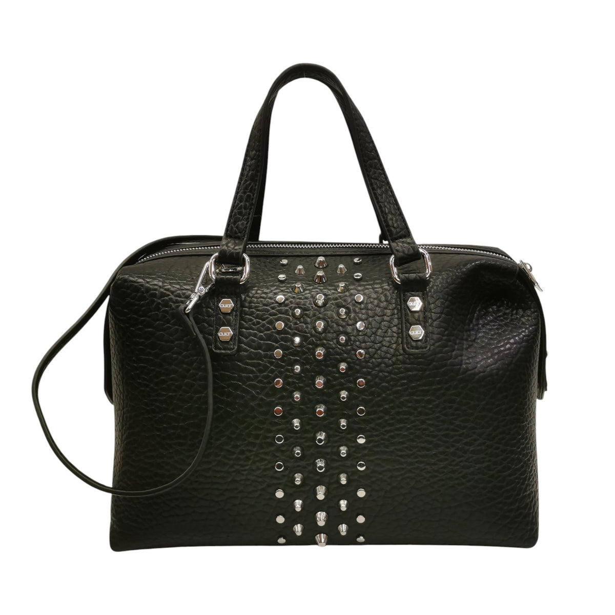 Cult Borsa a Spalla Donna in Ecopelle Nera con Borchie e Tracolla