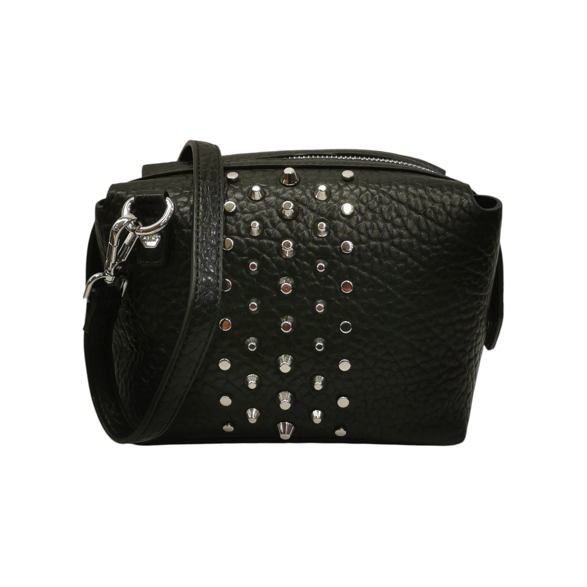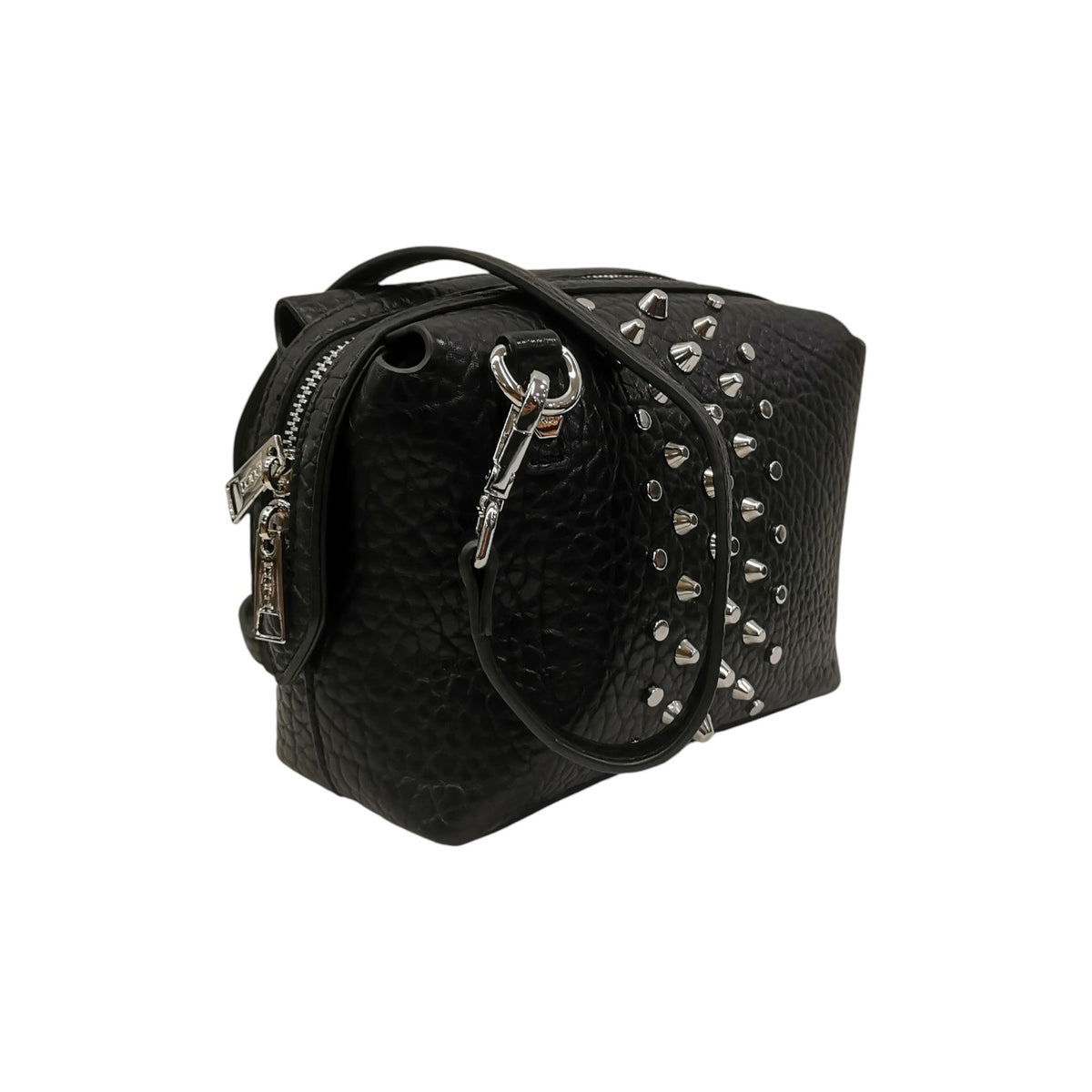 Cult Borsa a Tracolla Donna in Ecopelle Martellata Nera con Borchie