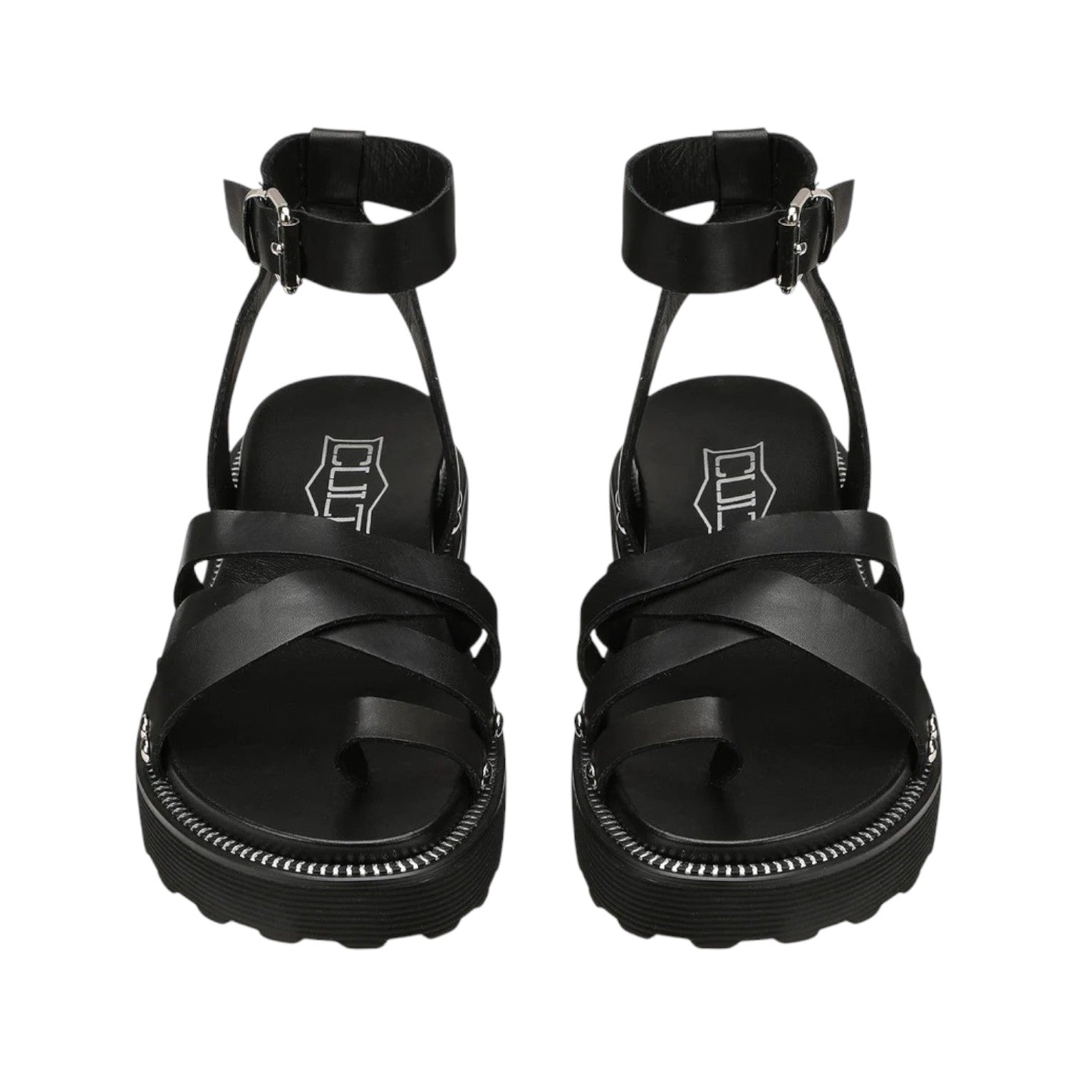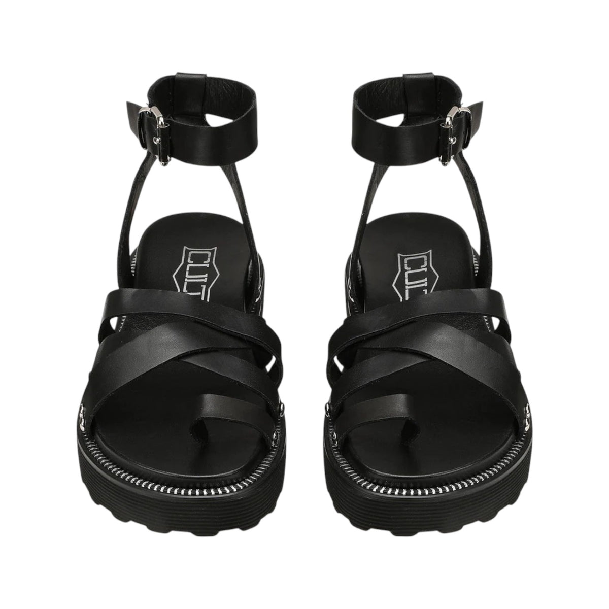 Il Sandalo firmato Cult, immancabili nel guardaroba di stagione, i sandali chunky aggiungeranno carattere e stile ai vostri look estivi. Realizzati in pelle nera, presentano cinturini con borchie metalliche e poggiano su una generosa suola in gomma. Sceglieteli sia con shorts sia con abiti.