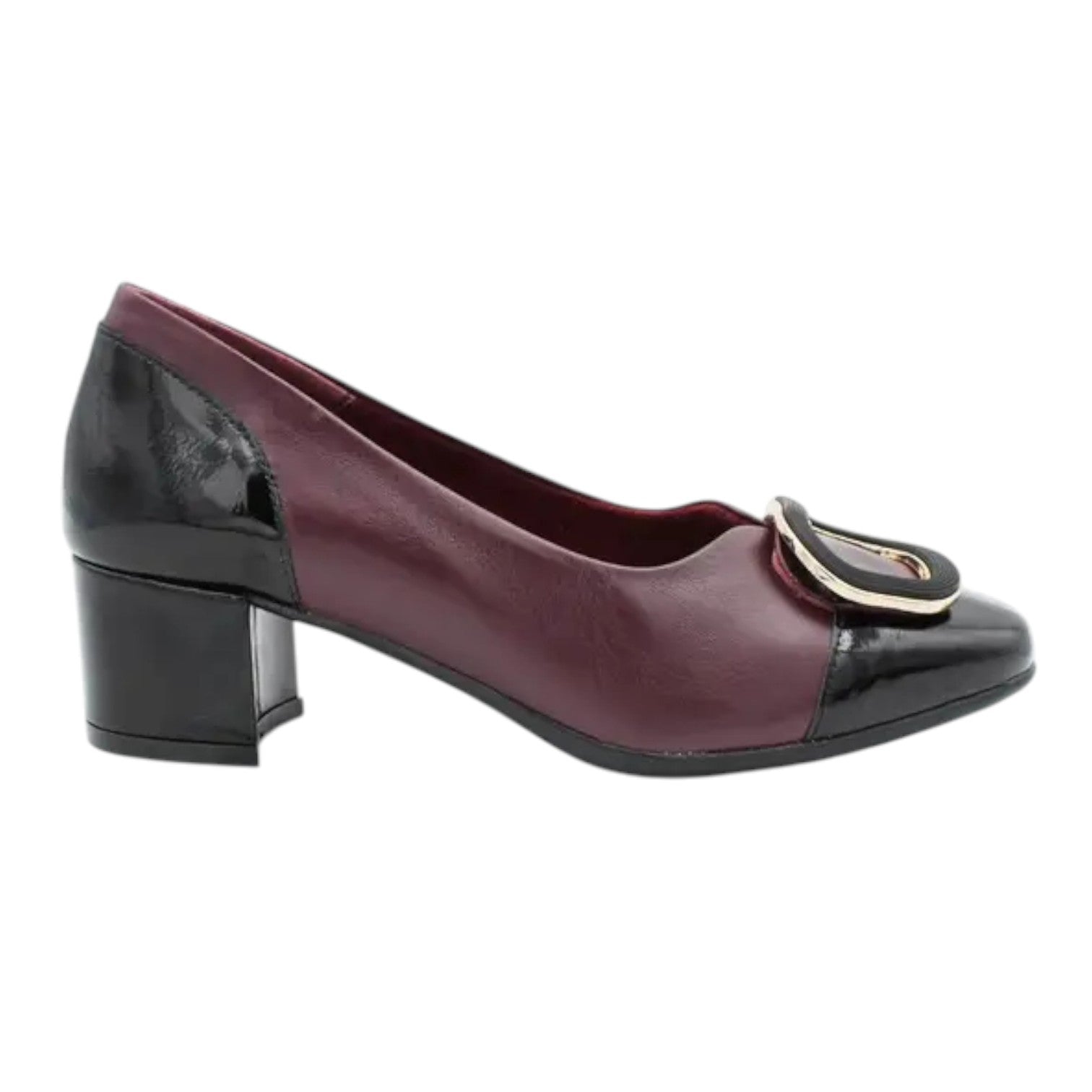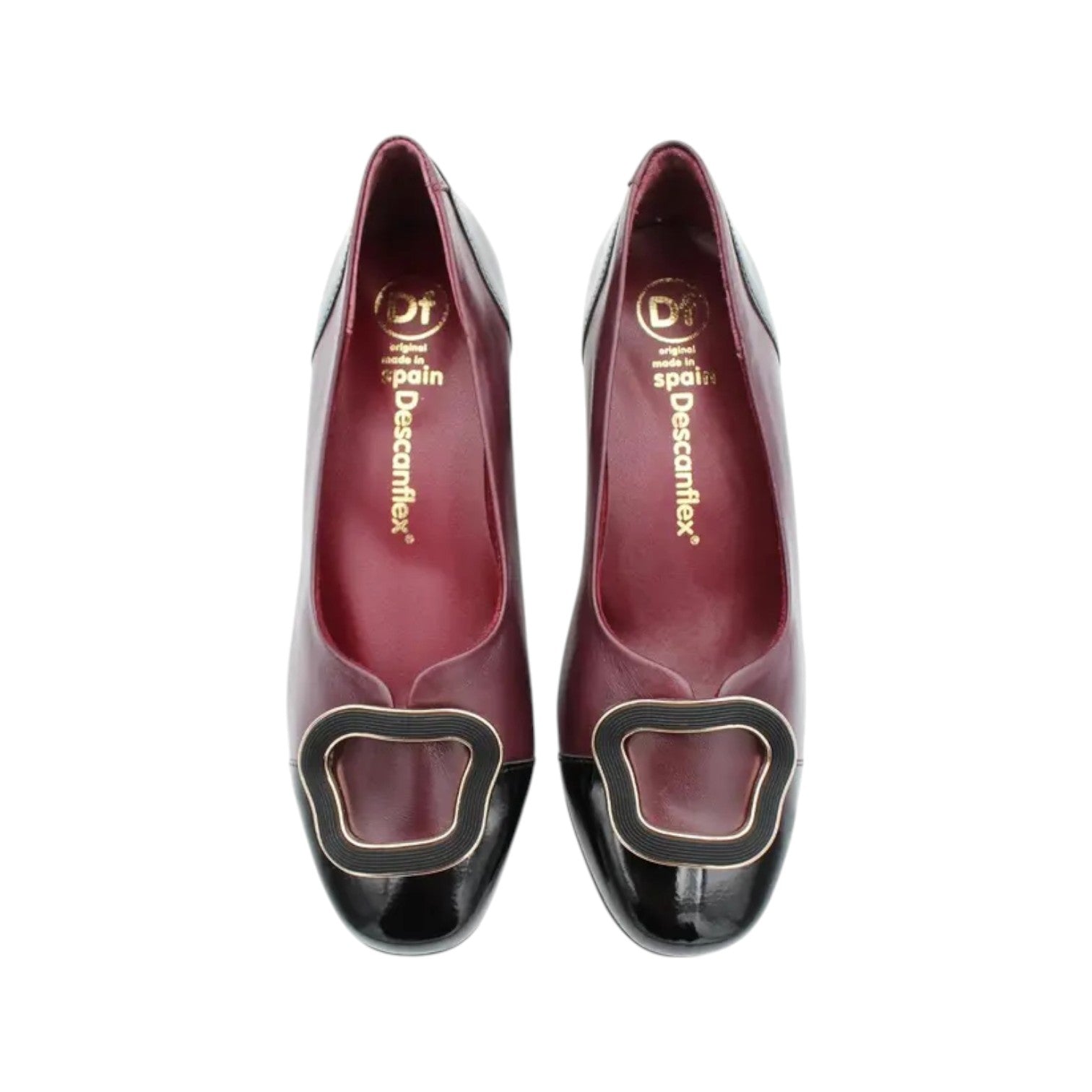 Descanflex Dècollettè Donna in Pelle Bordeaux con Accessorio e Tacco Largo Alto 50mm