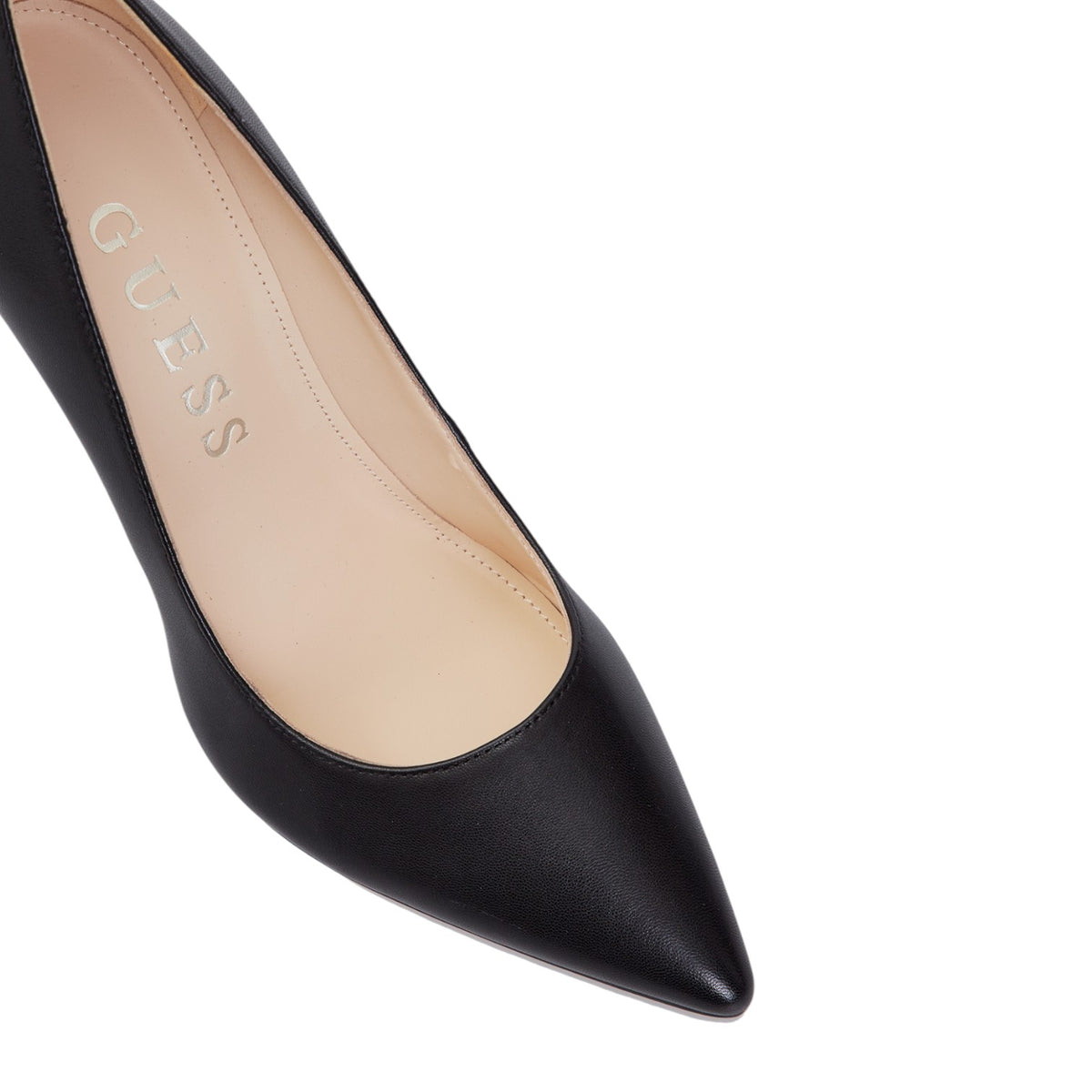 Il Décolleté firmato Guess, modello a punta realizzato in pelle è caratterizzato da dettaglio scritta logo sul retro e su suola, e da sottopiede e fodera interna rivestiti in morbida pelle, presenta un comodo tacco a stiletto alto 7cm.