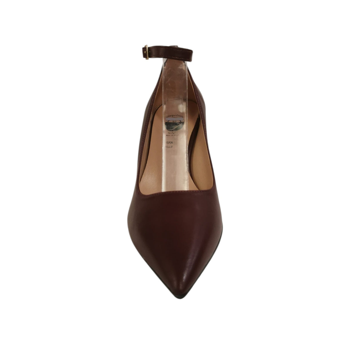 Il Décolleté firmato Scarpeborseonline, realizzato in ecopelle qui proposto in questa variante bordeaux è caratterizzato da una punta sfilata davanti, inoltre dispone di interno foderato in ecopelle con sottopiede rivestito in pelle, il tacco largo di 6cm offre un maggior comfort. Presenta un comodo braccialetto regolabile alla caviglia.
