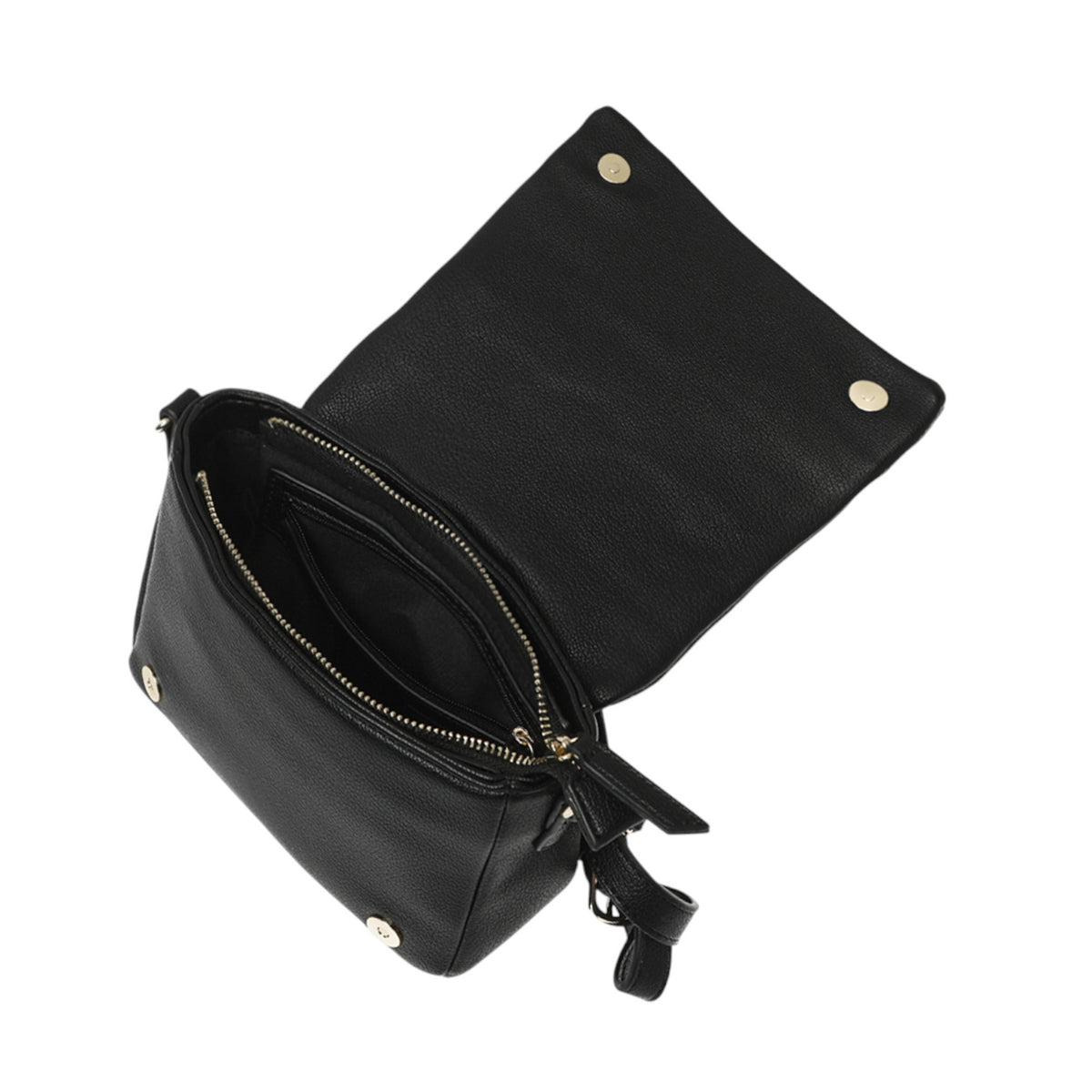 La Borsa a tracolla firmata By Byblos, dalla texture morbida qui proposta nella variante nera realizzata in ecopelle è caratterizzata da chiusura con zip e bottone magnetico, l'interno è foderato in tessuto di cui dispone di tasca con zip, ha una doppia portabilità: a spalla grazie al manico in catena removibile oppure con tracolla regolabile e removibile.