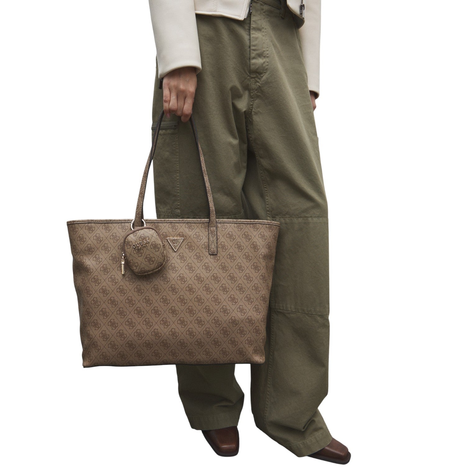 La Borsa a spalla firmata Guess, realizzata in ecopelle qui proposta nella variante nera è caratterizzata da manici lunghi e da pochette coordinata, presenta l'interno foderato in tessuto logato di cui dispone di taschini. Il suo aspetto chic e le sue funzionalità ingegnose faranno di questo tote bag un must-have del tuo guardaroba.