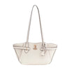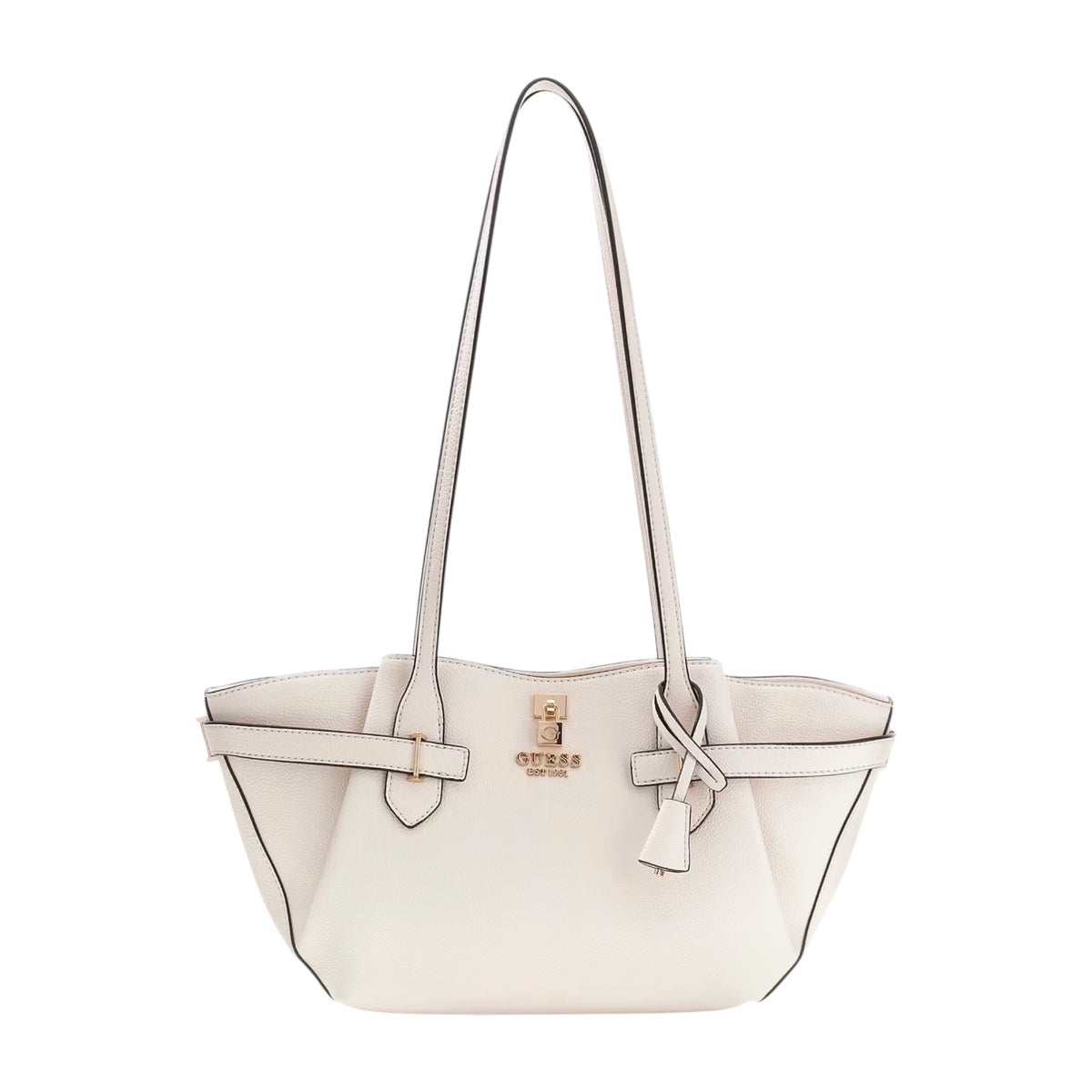 La Borsa a spalla firmata Guess, realizzata in ecopelle bianca è caratterizzata da ciondolo frontale removibile e da un lucchetto dorato con logo, l'interno è foderato in tessuto logato con taschino chiuso con zip. Ha una silhouette raffinata dallo stile elegante e dal design contemporaneo.