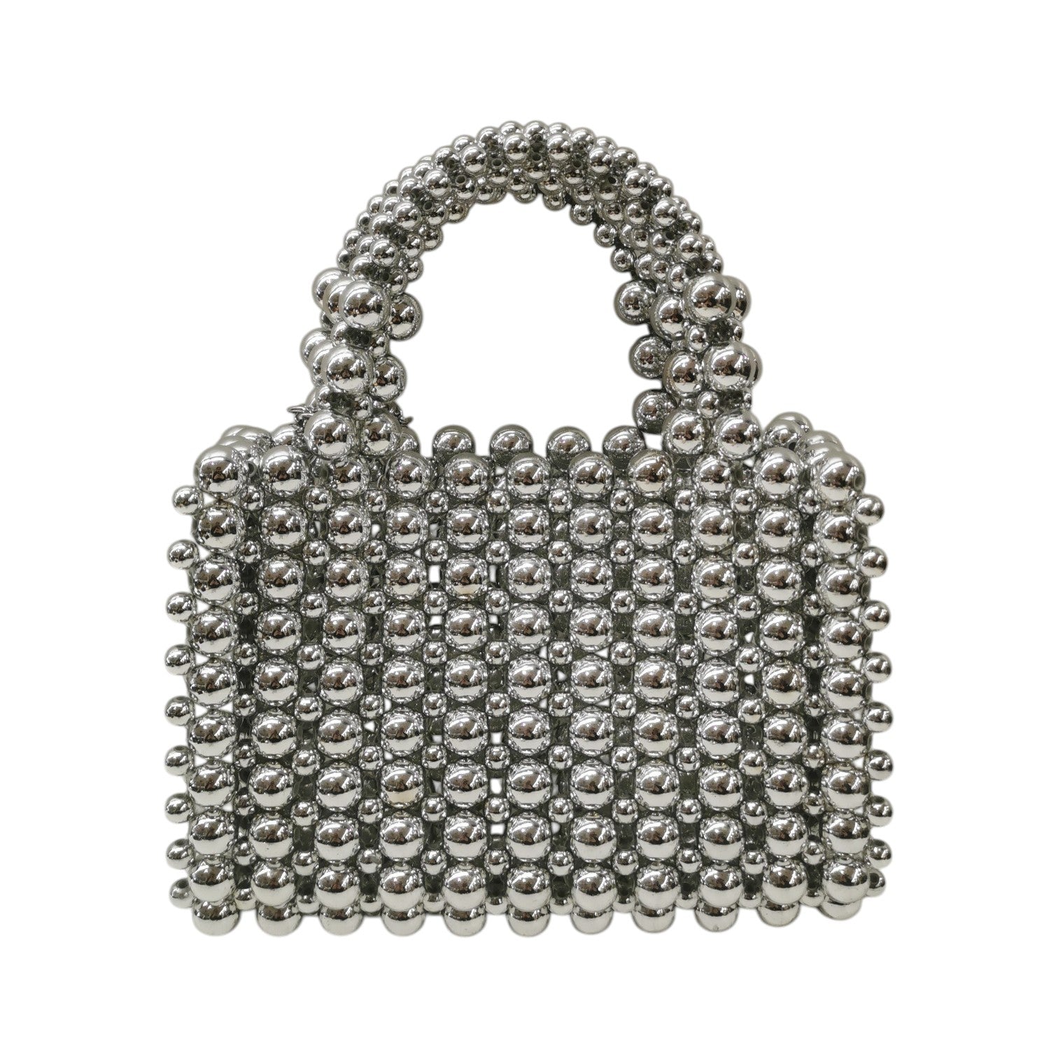La Borsa a mano firmata M Brc, della Linea Queen realizzata in acrilico qui proposta nella variante argento è caratterizzata da charm pendente removibile e da tracolla a catena removibile.
