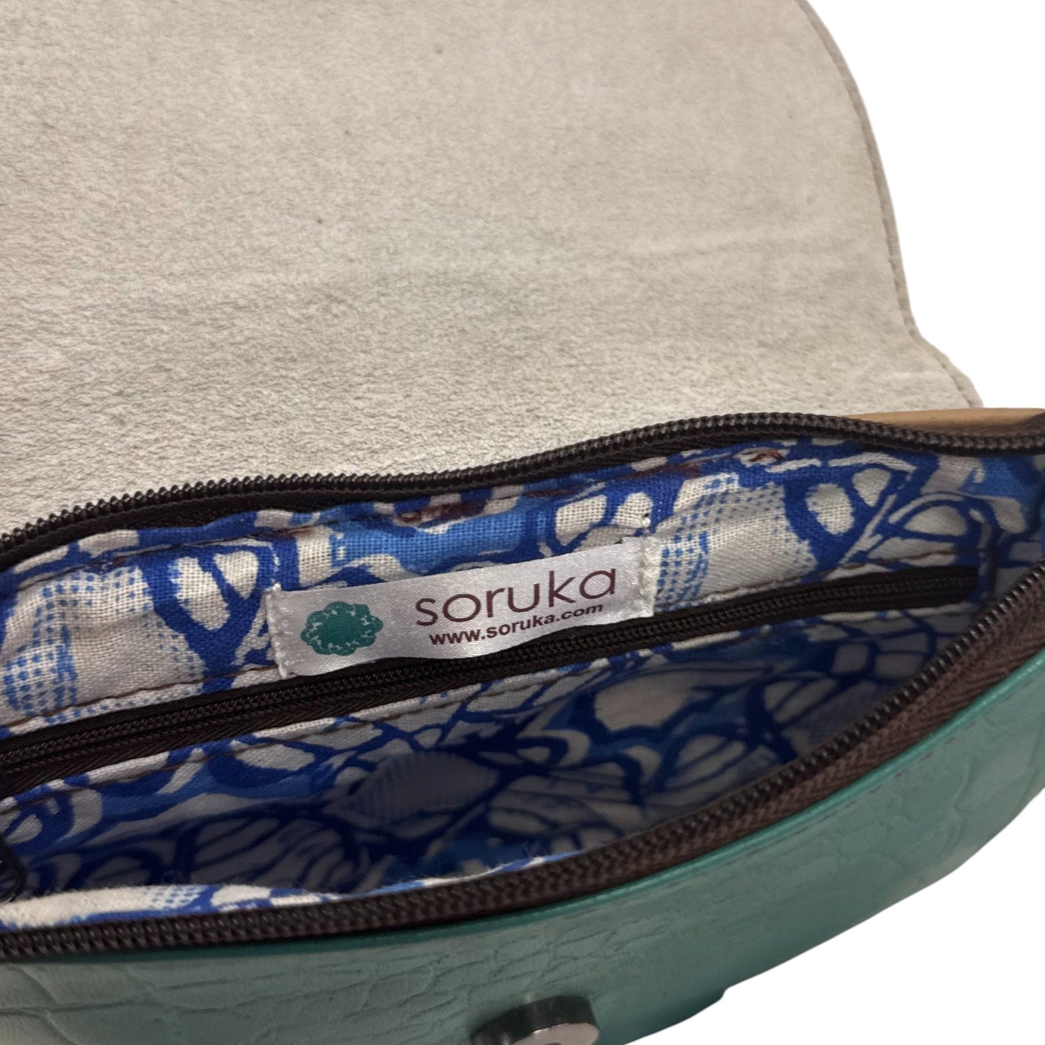 La Tracolla firmata Soruka, Modello Scarlet è caratterizzata da inserti multicolor, presenta una stampa effetto cocco, una tracolla regolabile e l'interno è foderato in tessuto a fantasia con taschino con zip, le due anelline laterali quasi invisibile la rendono portabile sia a mano che a tracolla, modello a produzione “zero waste” equa e responsabile che utilizza gli scarti di pelle. Soruka è un progetto che trasforma scarti di pelle in accessori moda unici, sostenibili e fatti a mano.