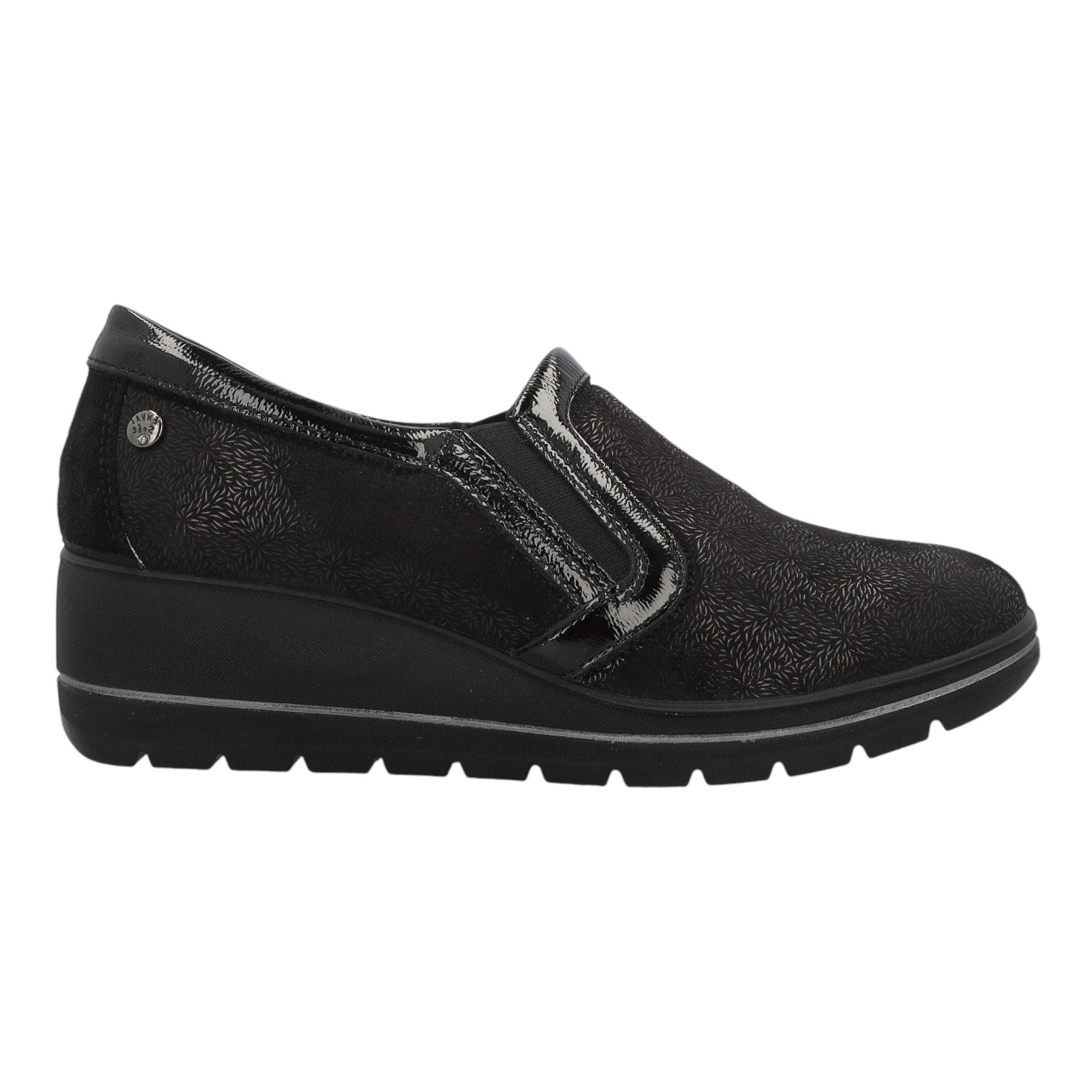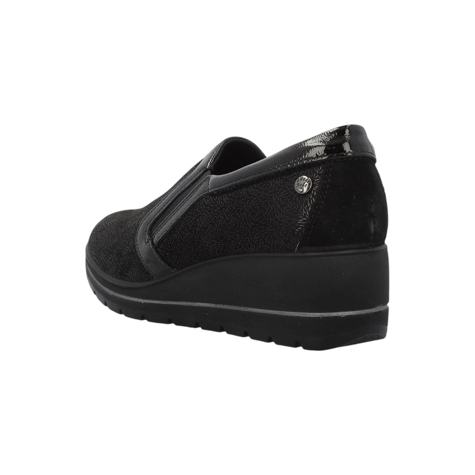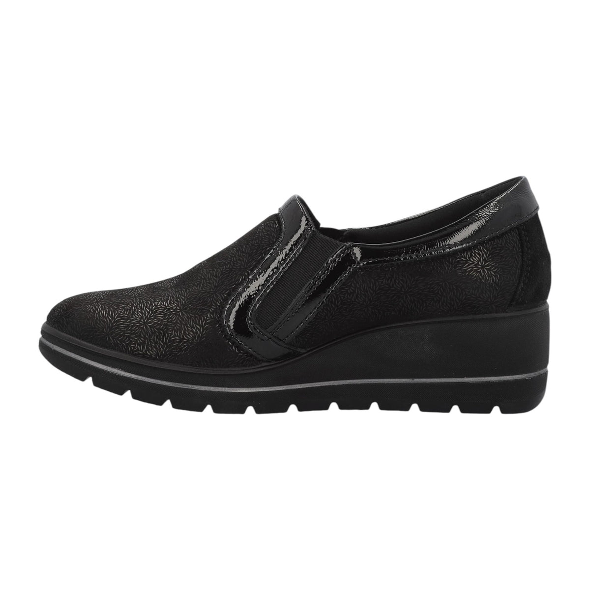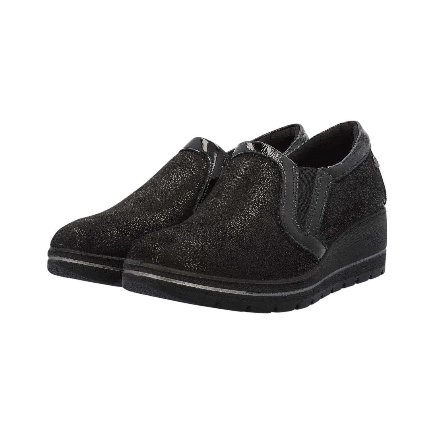 Enval Soft Mocassino Nero in Camoscio Nero con Inserto in Vernice e Zeppa Alta 50mm