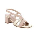 Il Sandalo firmato Enval Soft, realizzato in morbida pelle è caratterizzato da fasce laminate dorate e da fibbia alla caviglia fissata con tassello elastico per non ostacolare i tuoi movimenti e la suola ha un tacco di media altezza che dona slancio senza stancare.