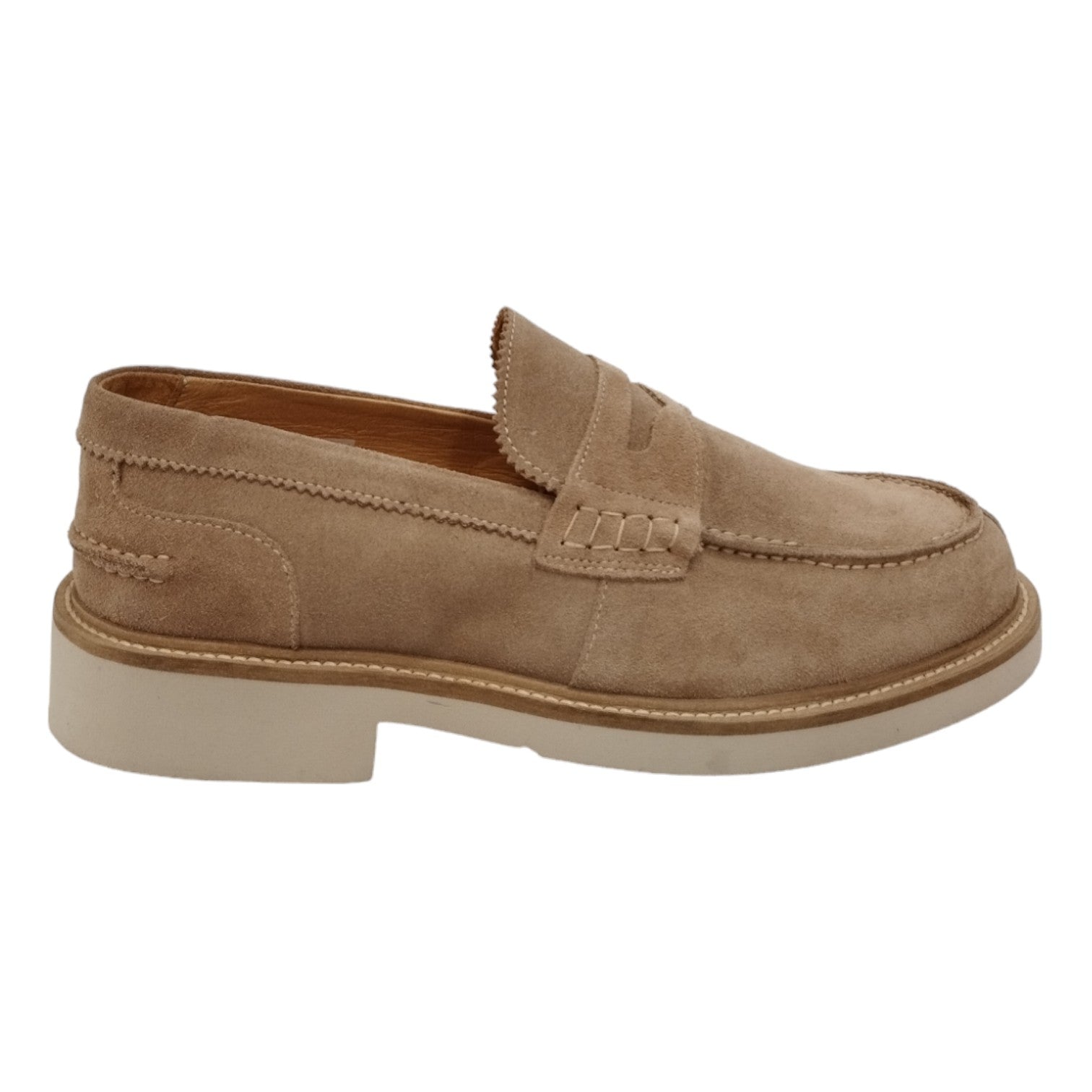 Exton Mocassino Uomo in Camoscio Sabbia con Fondo Bianco