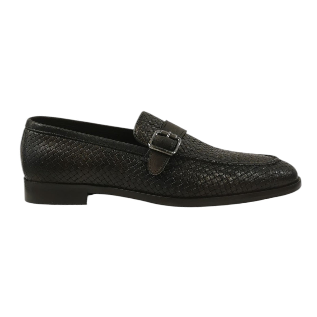 Exton Mocassino Uomo in Pelle Nera con Motivo Intrecciato e Cinturino con Fibbia
