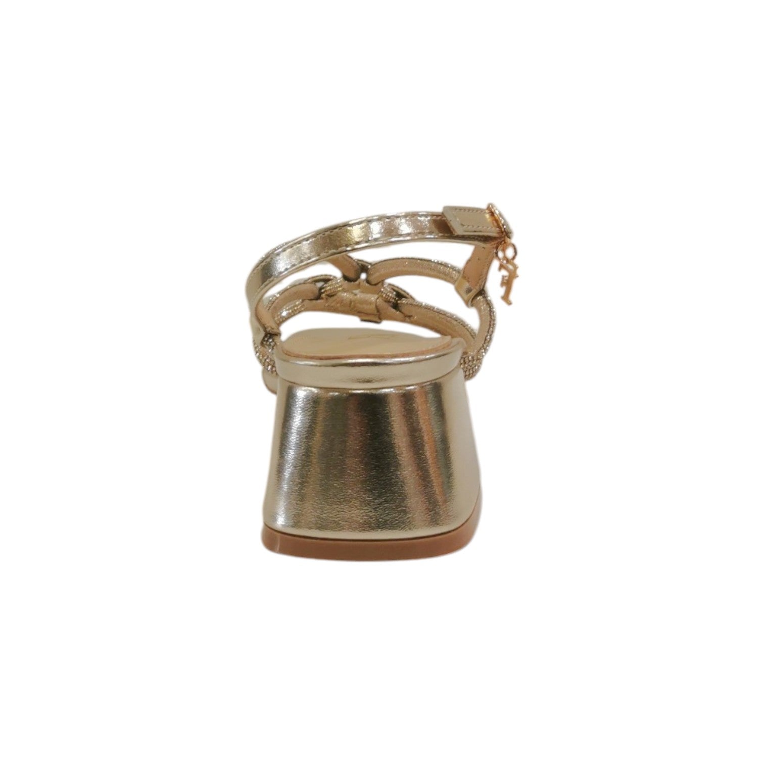 Ferrè Sandalo Donna in Ecopelle Laminata Platino con Strass e Tacco Largo di 4,5cm