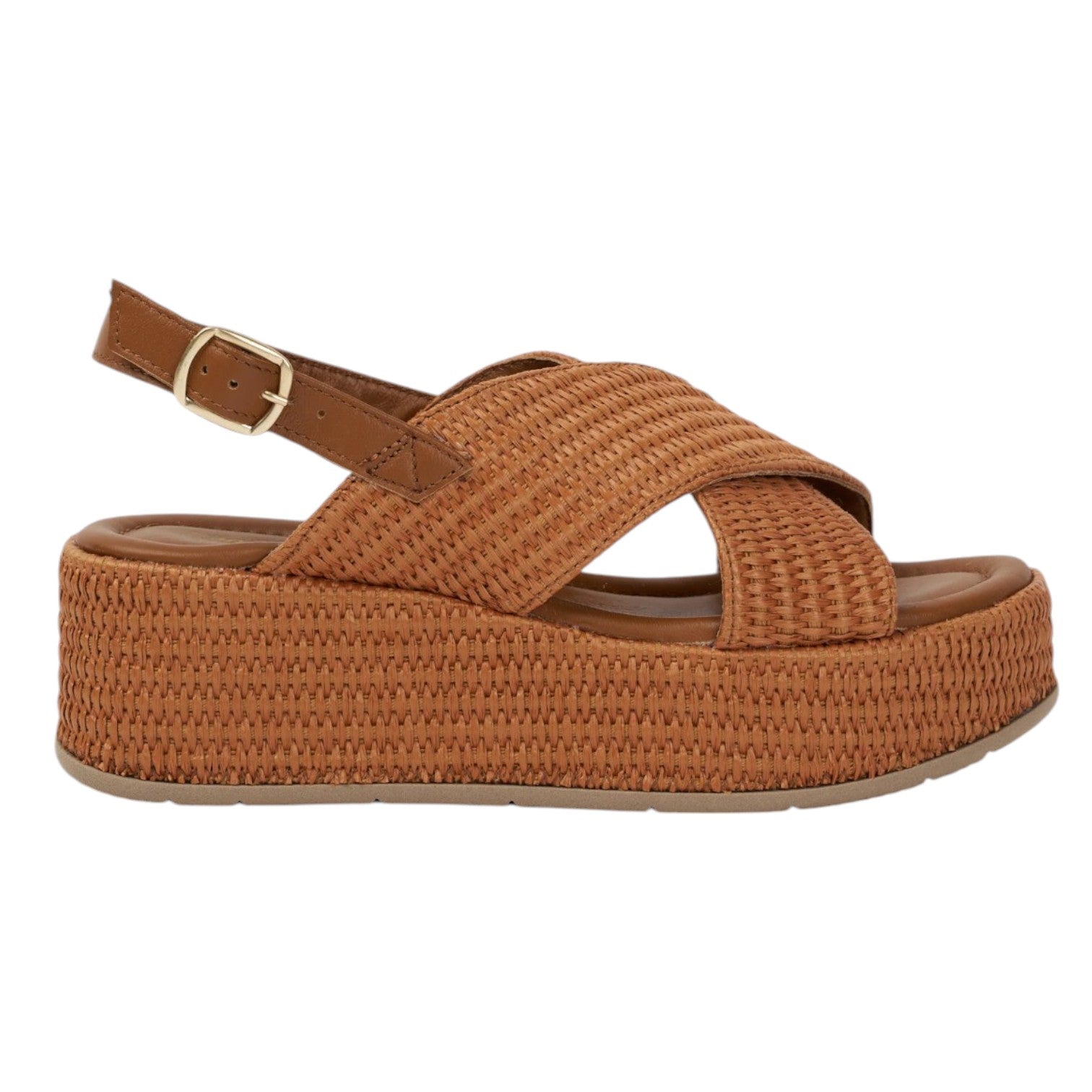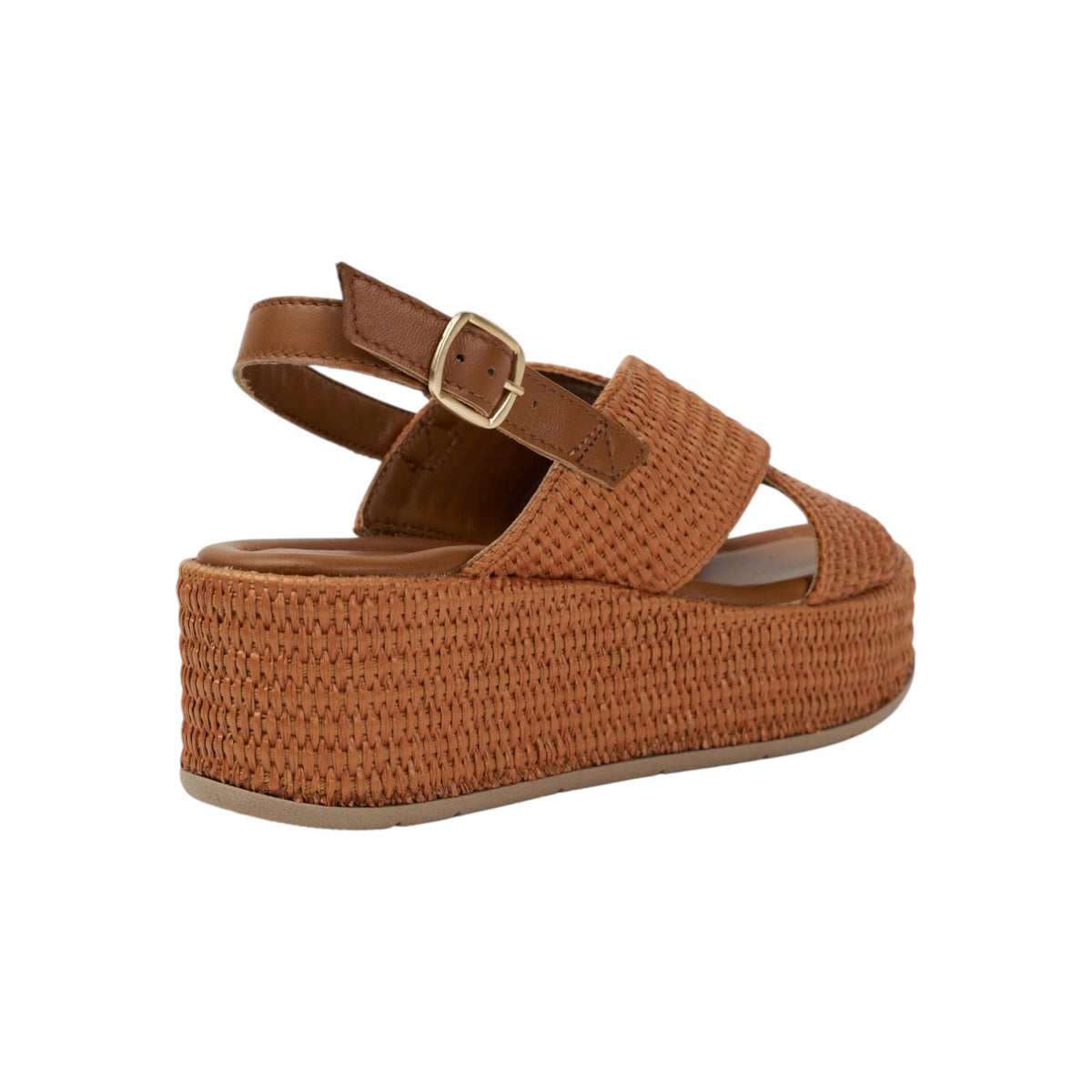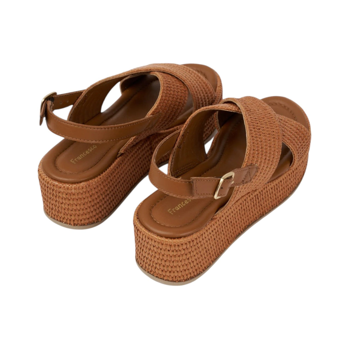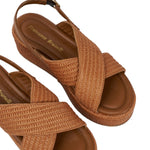 Il Sandalo firmato Francesco Brunelli, realizzato in pelle e raffia con un design sportivo e una struttura in raffia, questi sandali incrociati uniscono moda e comfort, presenta l'interno in ecopelle con plantare in pelle ed una zeppa di 6cm che slancia la figura.