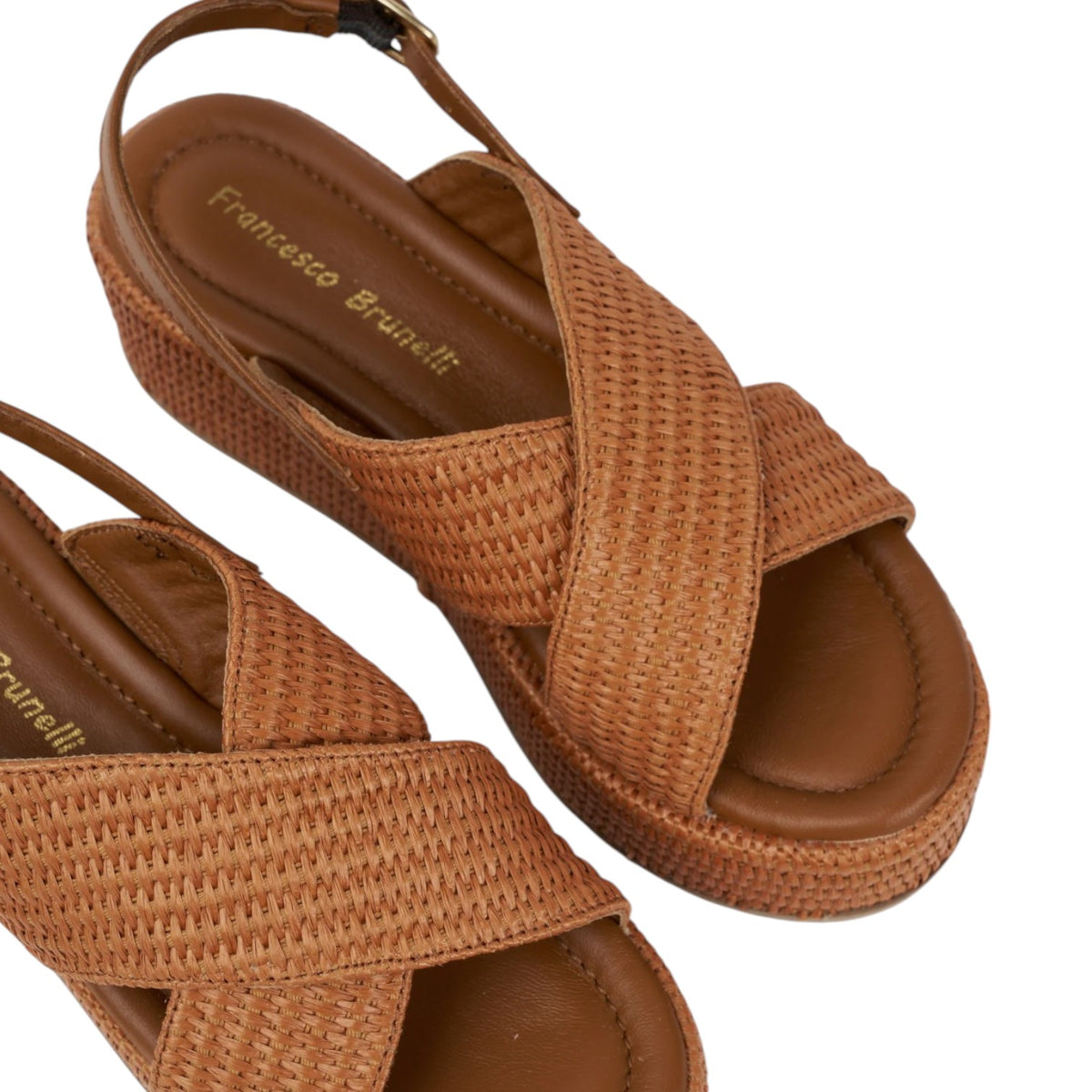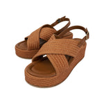Francesco Brunelli Sandalo Cuoio Intrecciato con Zeppa da Donna