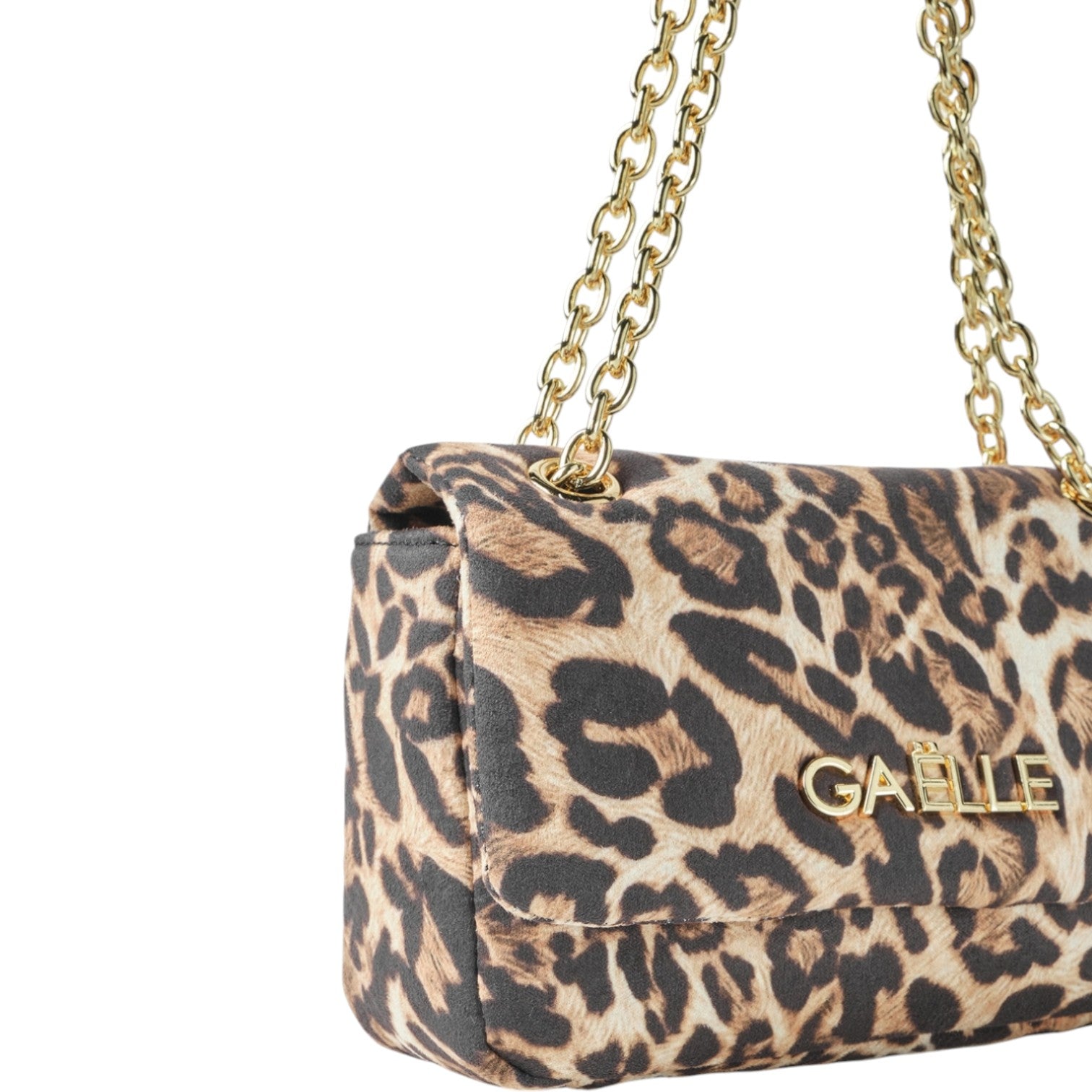 Gaelle Borsa a Tracolla Piccola Donna in Ecopelle Maculata con Catena Oro