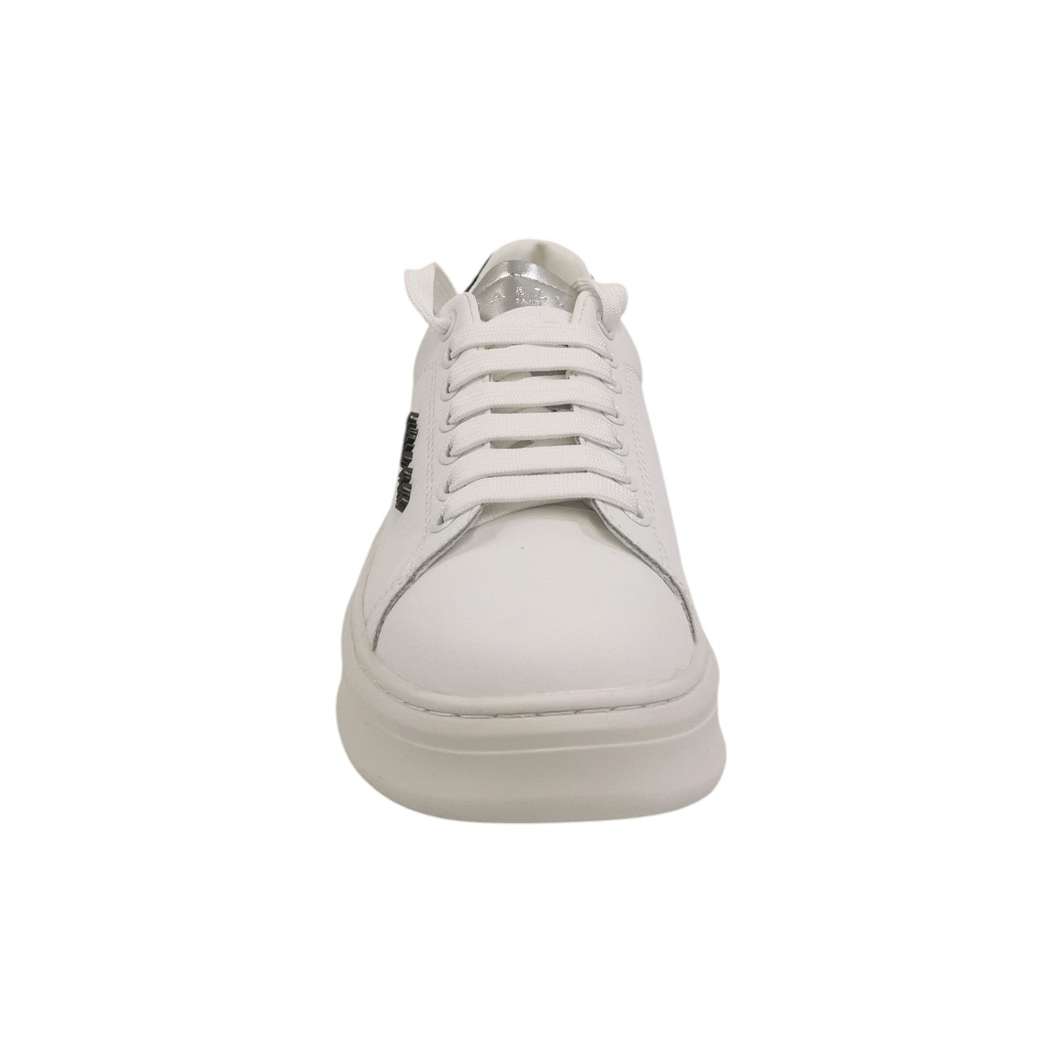 Gaelle Sneakers Donna in Pelle bianca con Talloncino con Strass Neri
