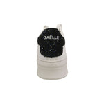 La Sneakers firmata Gaelle, modello leggermente più rialzata sul retro, rendendola comoda e stabile per tutti i giorni, realizzata in pelle qui proposta nella variante bianca è caratterizzata da scritta logo laterale e da talloncino con strass neri che la rendono unica e femminile.