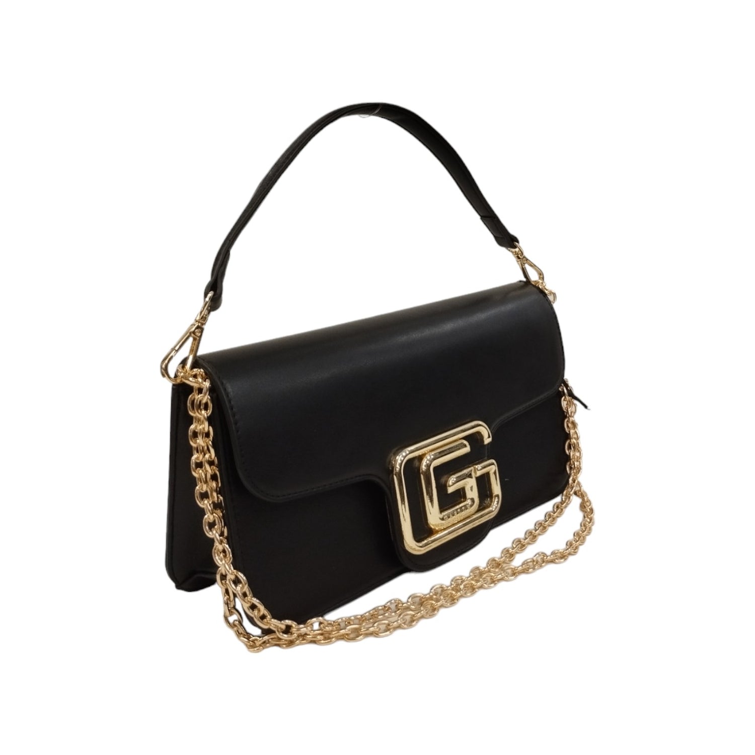 Gaelle Borsa a Tracolla Donna in Ecopelle Nera con Catena Argento
