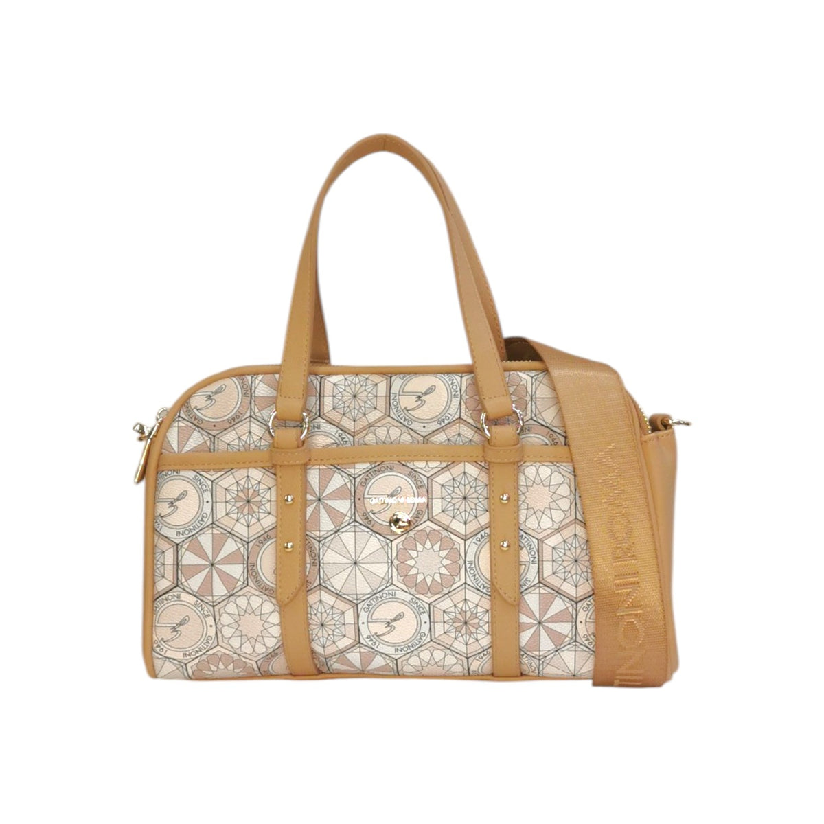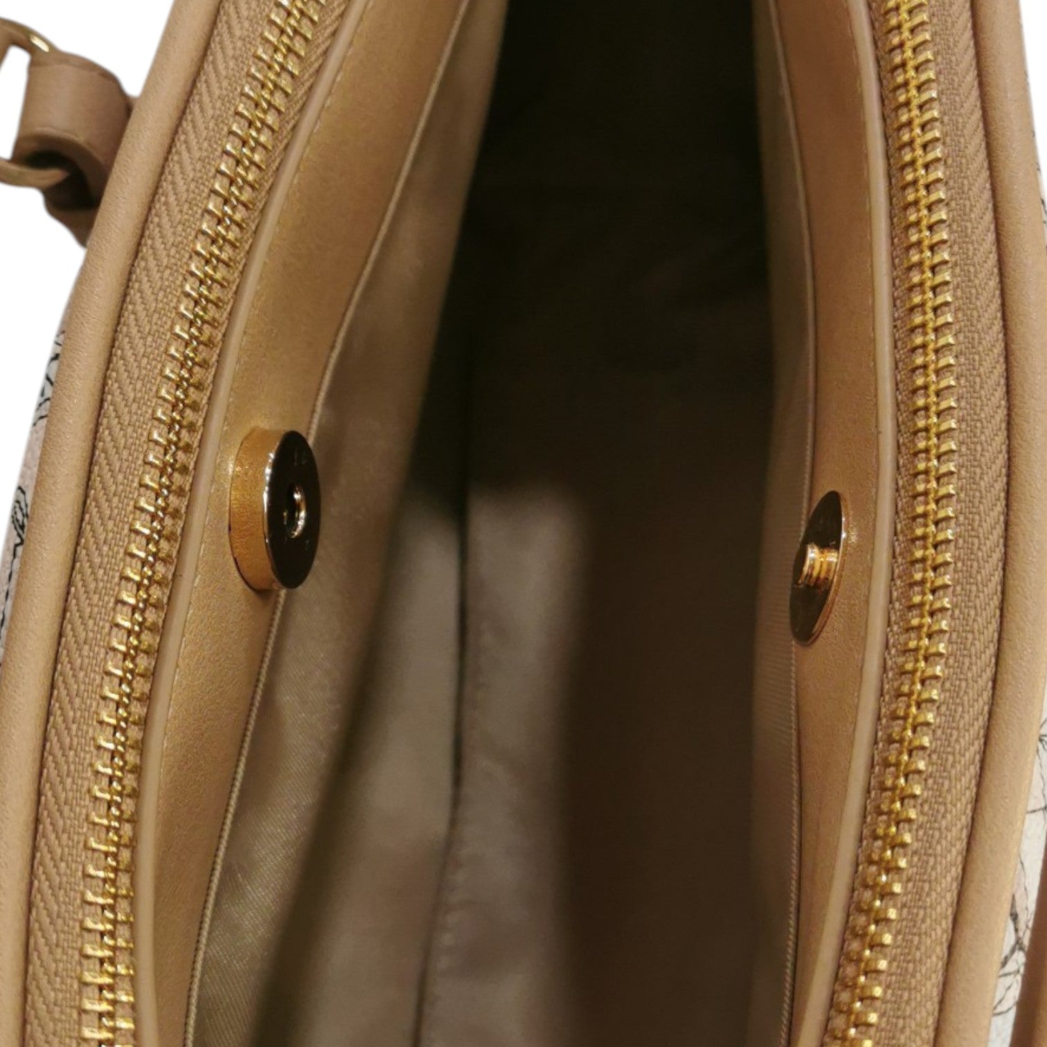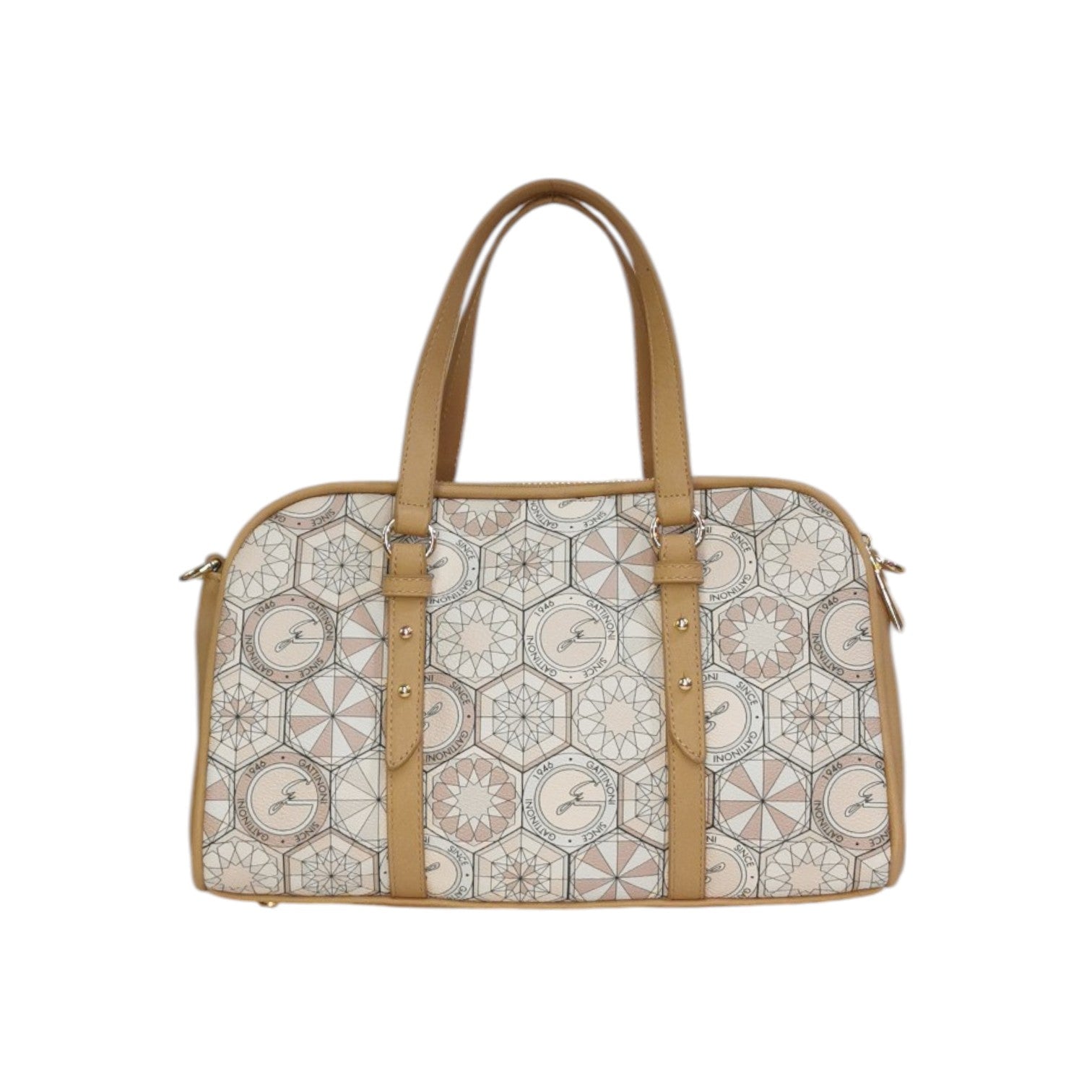 La Borsa a mano firmata Gattinoni Roma, realizzata in ecopelle è caratterizzata da targhetta logo frontale e da stampa teodosia all over, all'interno presenta due scomparti laterali con zip e uno Scomparto centrale con tasche aperte e con zip.
