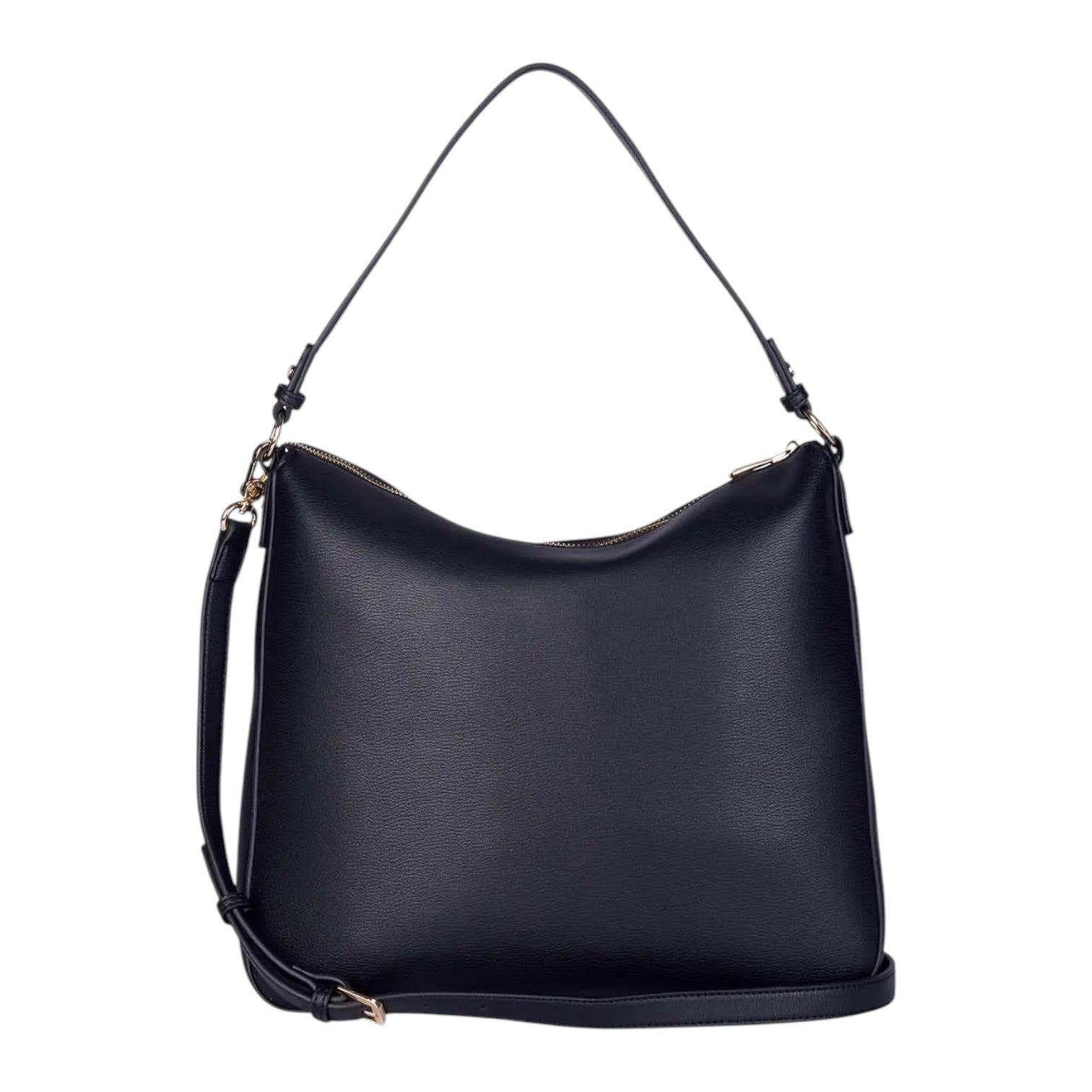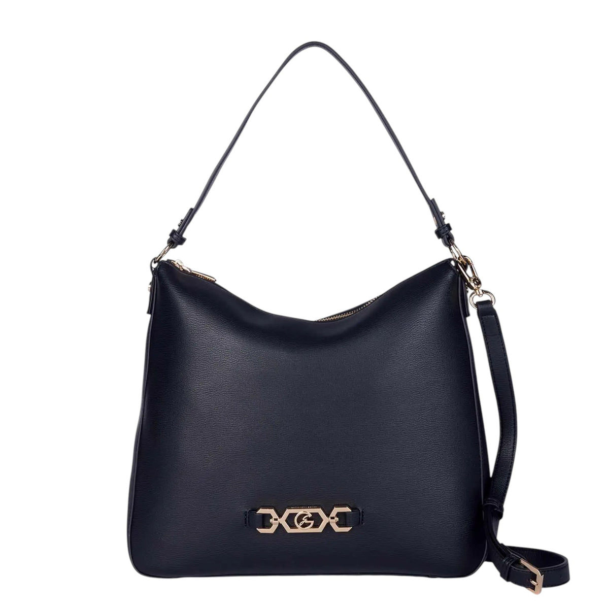 La Borsa a spalla firmata Gattinoni Roma, nel modello hobo in nero è sofisticatezza essenziale della Linea Leslie, realizzata in ecopelle è caratterizzata da charm removibile e da taschino interno, presenta una tracolla reversibile. Accompagna con discrezione ogni momento della giornata.