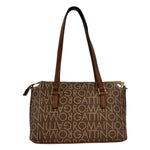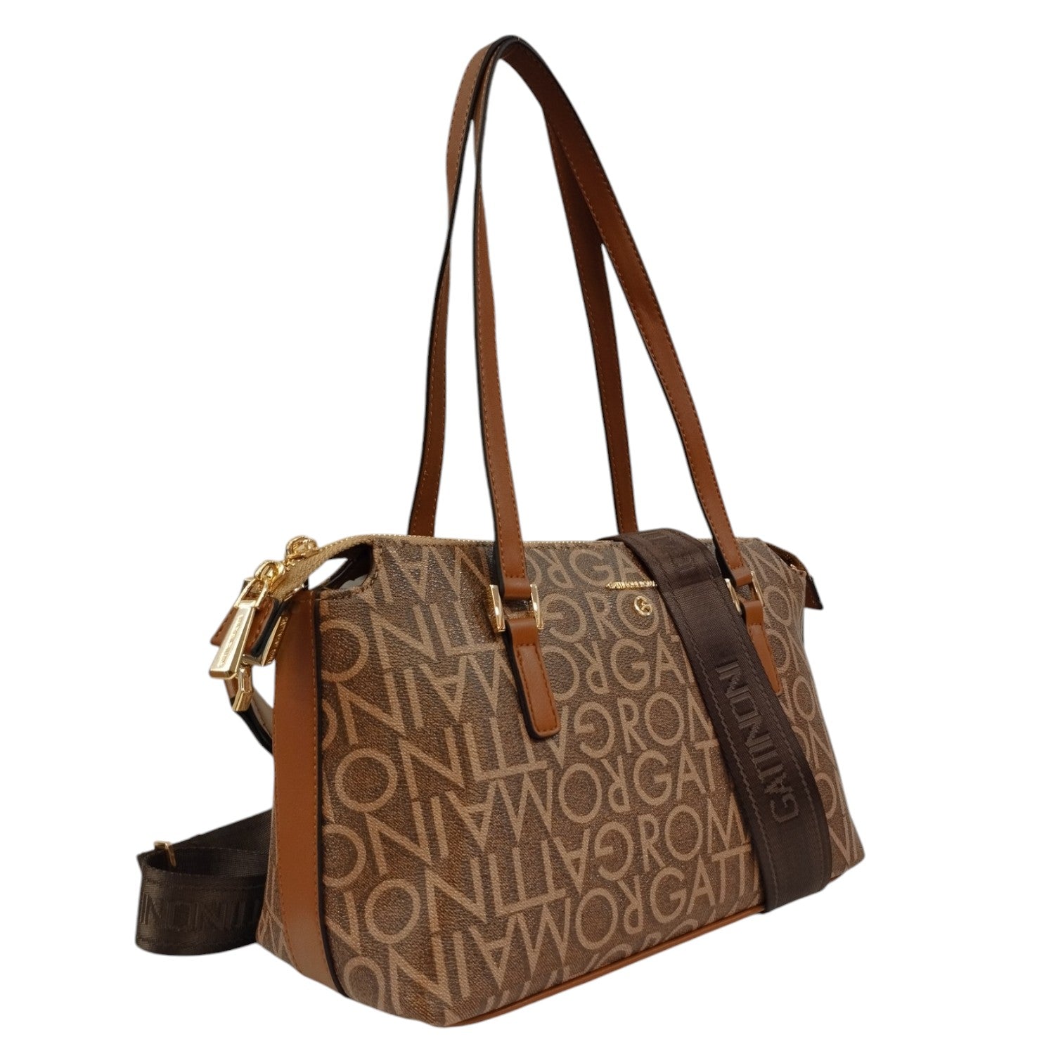 Gattinoni Roma Borsa a Spalla Media Donna in Colore Cuoio Maxi Logo Lettering con Tracolla Tessuto