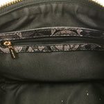 La Borsa a spalla firmata Gattinoni Roma, modello mezzaluna della Linea Denise Soft, realizzata in ecopelle nera è caratterizzata da charm removibile e da una comodissima tracolla di cui da una parte è con stampa teodosia e dall'altra parte è in tinta unita alla borsa. All'interno presenta un taschino con zip e un manico removibile. Un accessorio che accompagna con distinzione ogni momento della giornata.