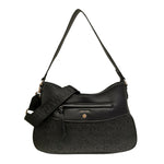 La Borsa a spalla firmata Gattinoni Roma, della Linea Teodosia Casual realizzata in ecopelle nera è caratterizzata da tasca frontale con zip per riporre i vostri oggetti e da tracolla in tessuto logata regolabile, l'interno è foderato in tessuto con taschino.