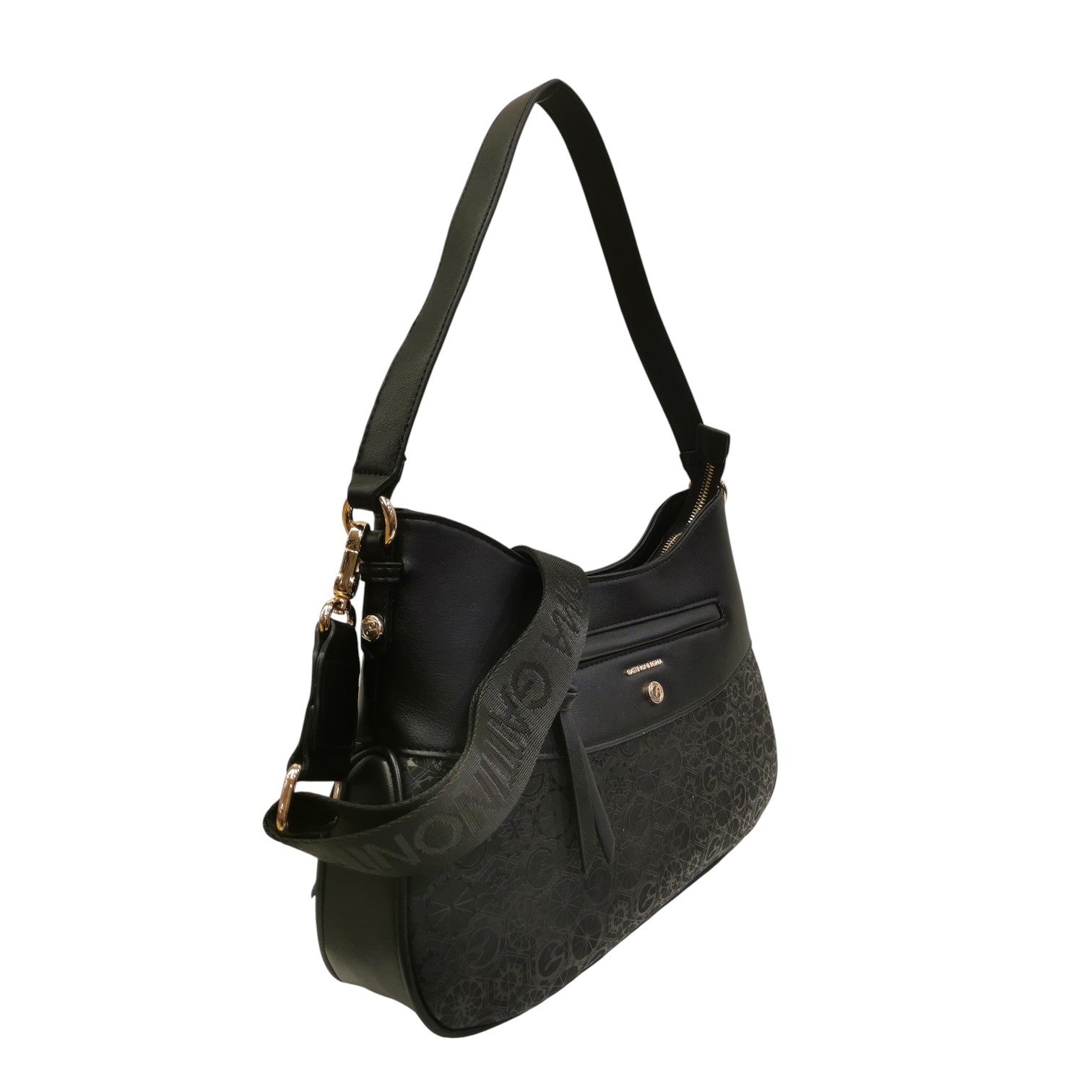 Gattinoni Roma Borsa a Spalla Teodosia Casual Donna in Ecopelle Nero con Tracolla Logata in Tessuto