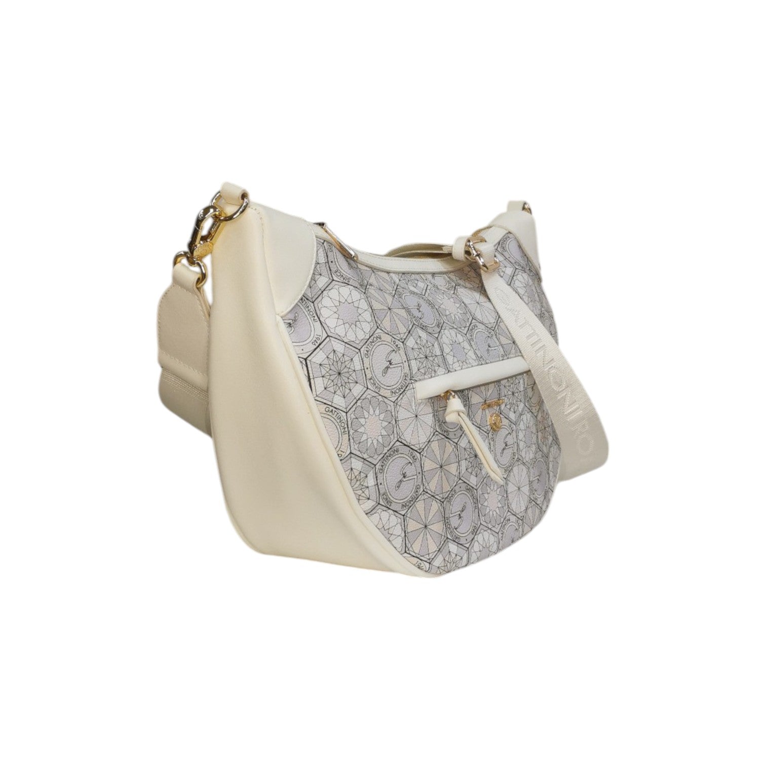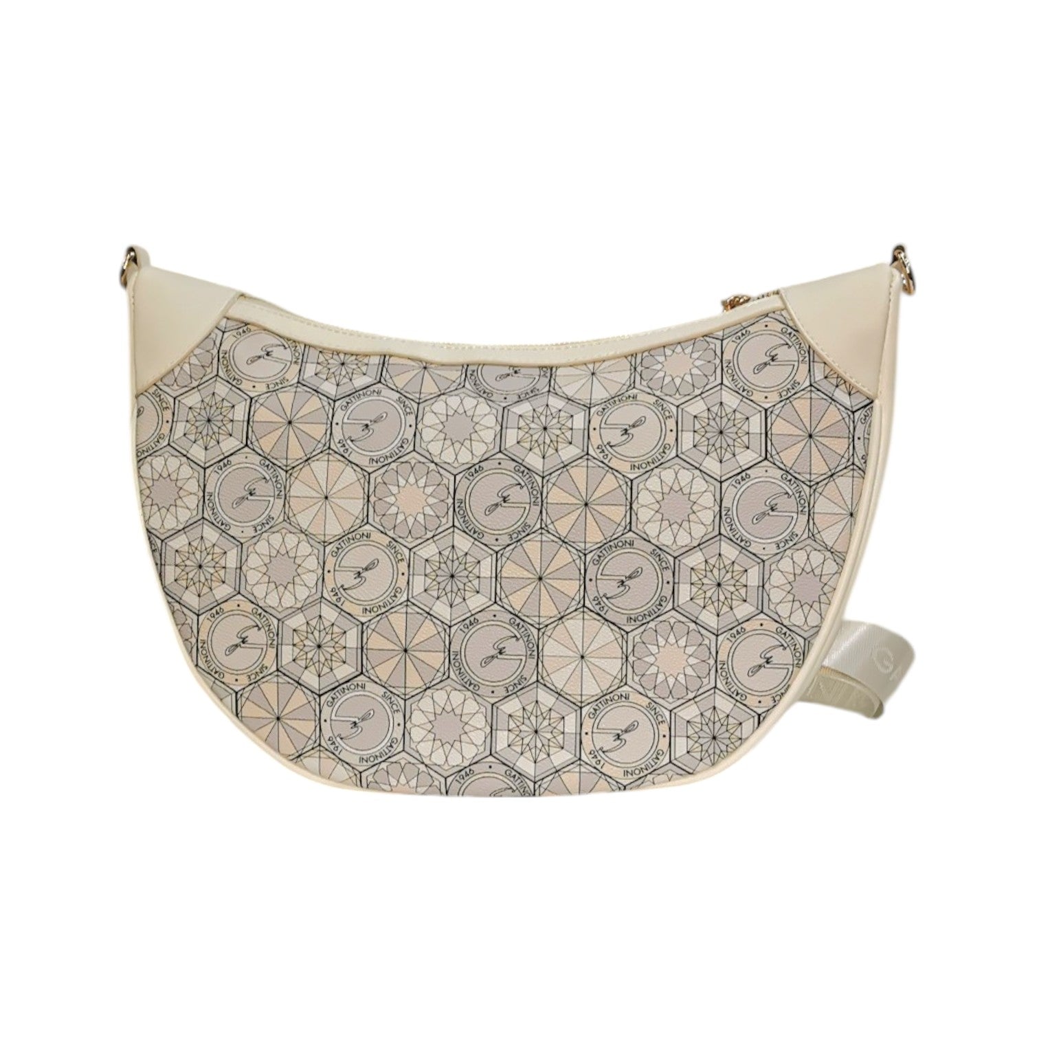 Gattinoni Roma Mezzaluna Donna in Stampa Teodosia Bianco e Tracolla in Tessuto Logato con Chiusura con Zip