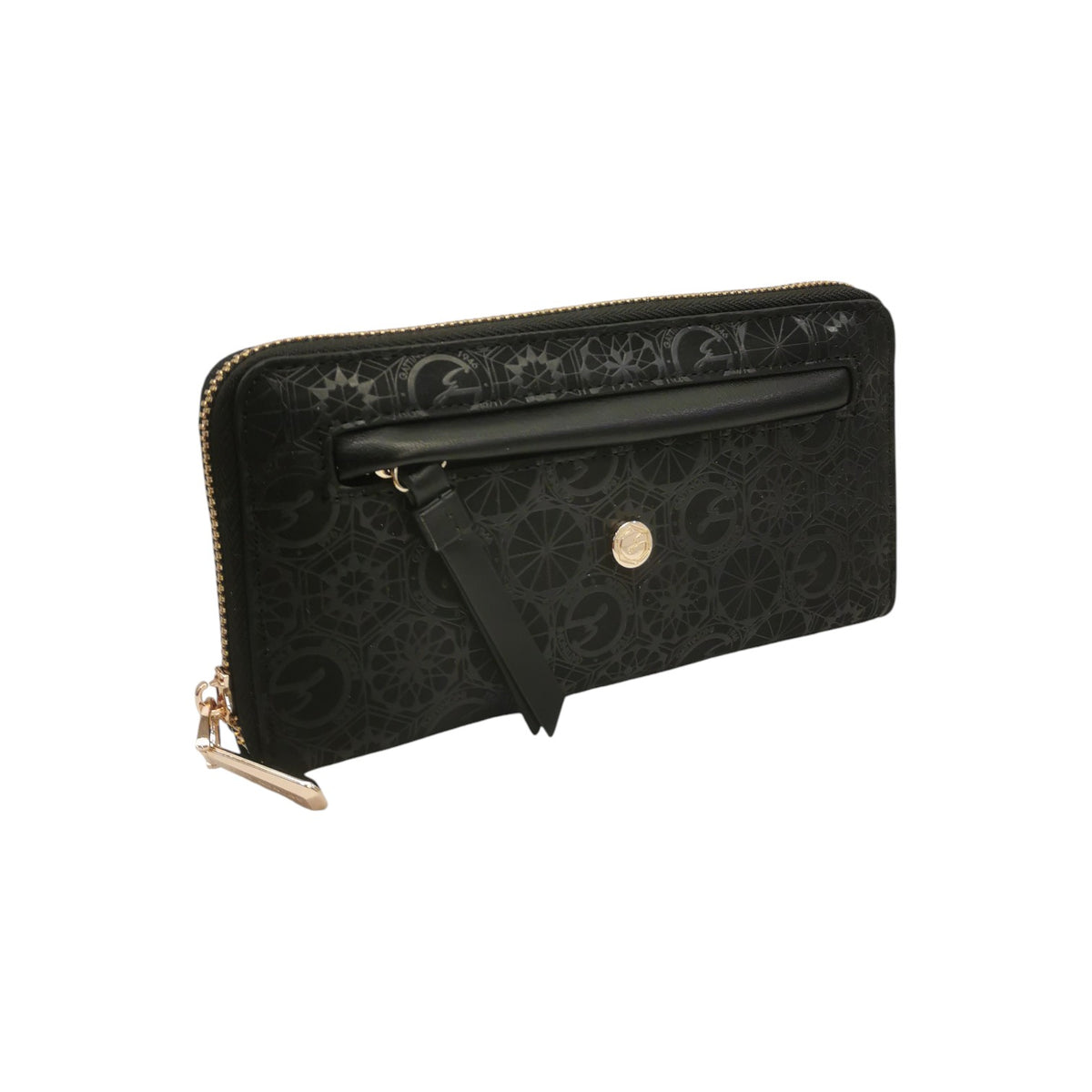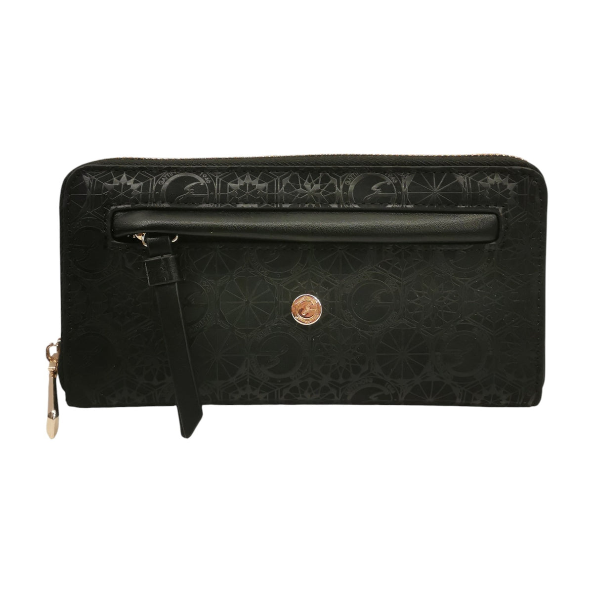 Gattinoni Roma Portafoglio Donna in Ecopelle Nera con Stampa Teodosia e Zip