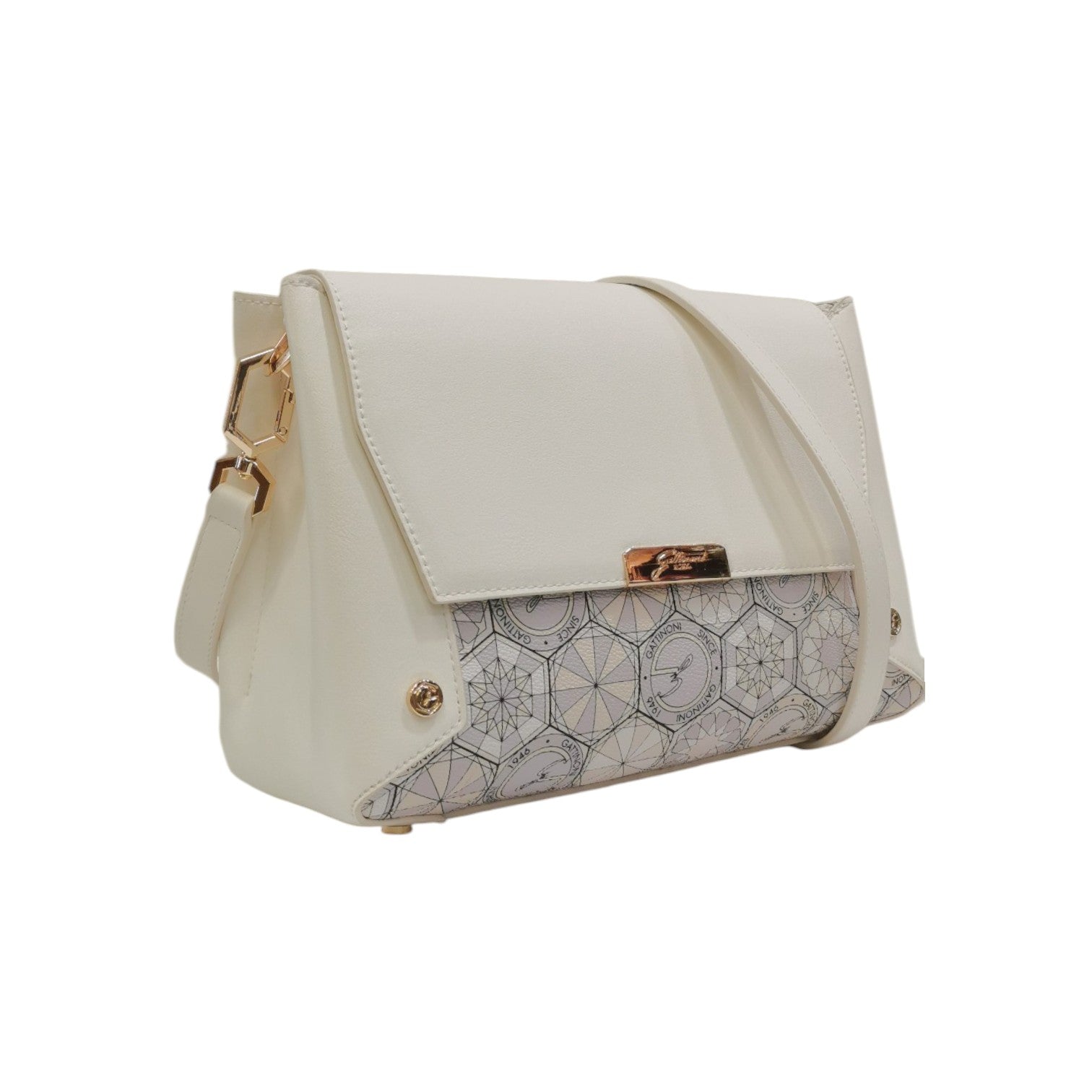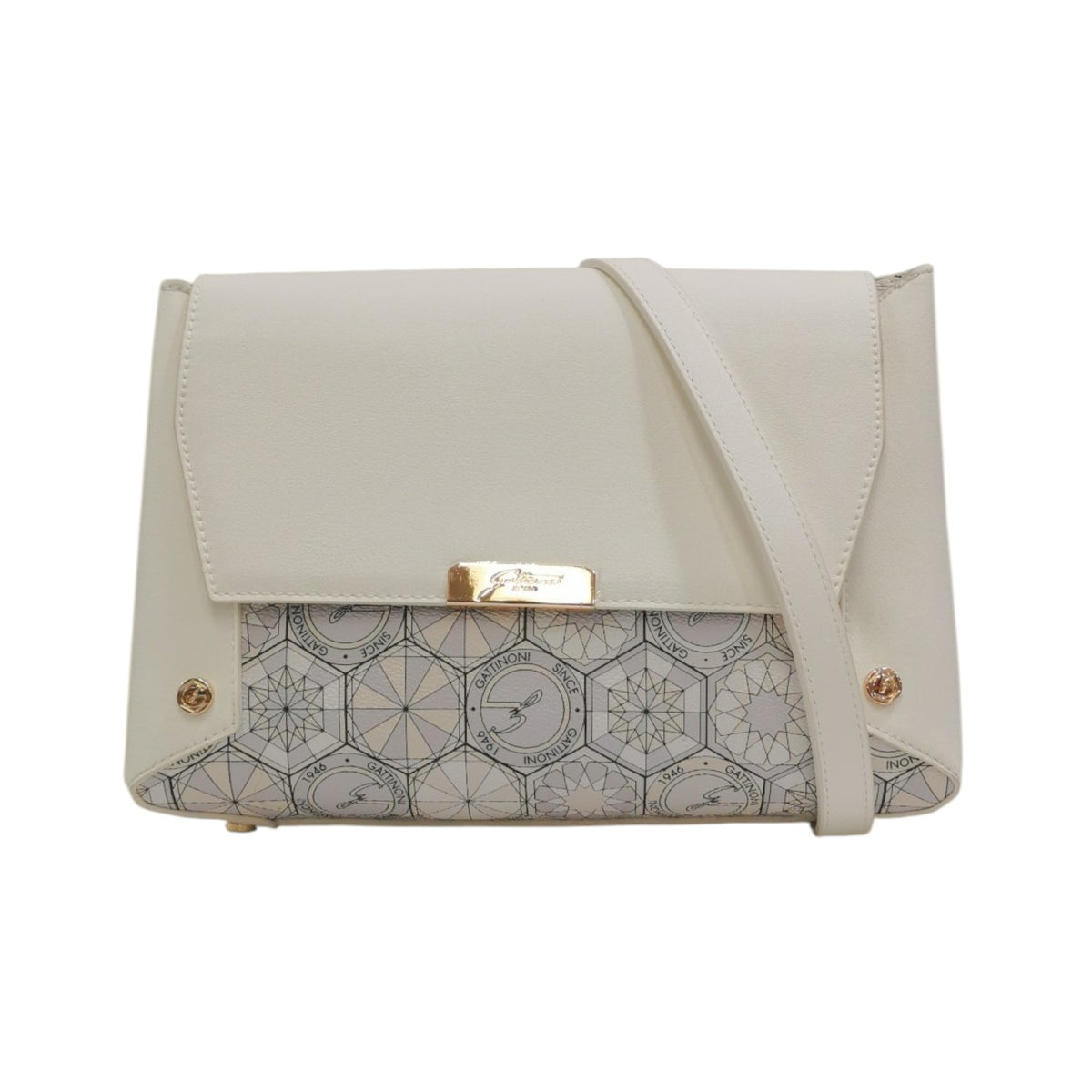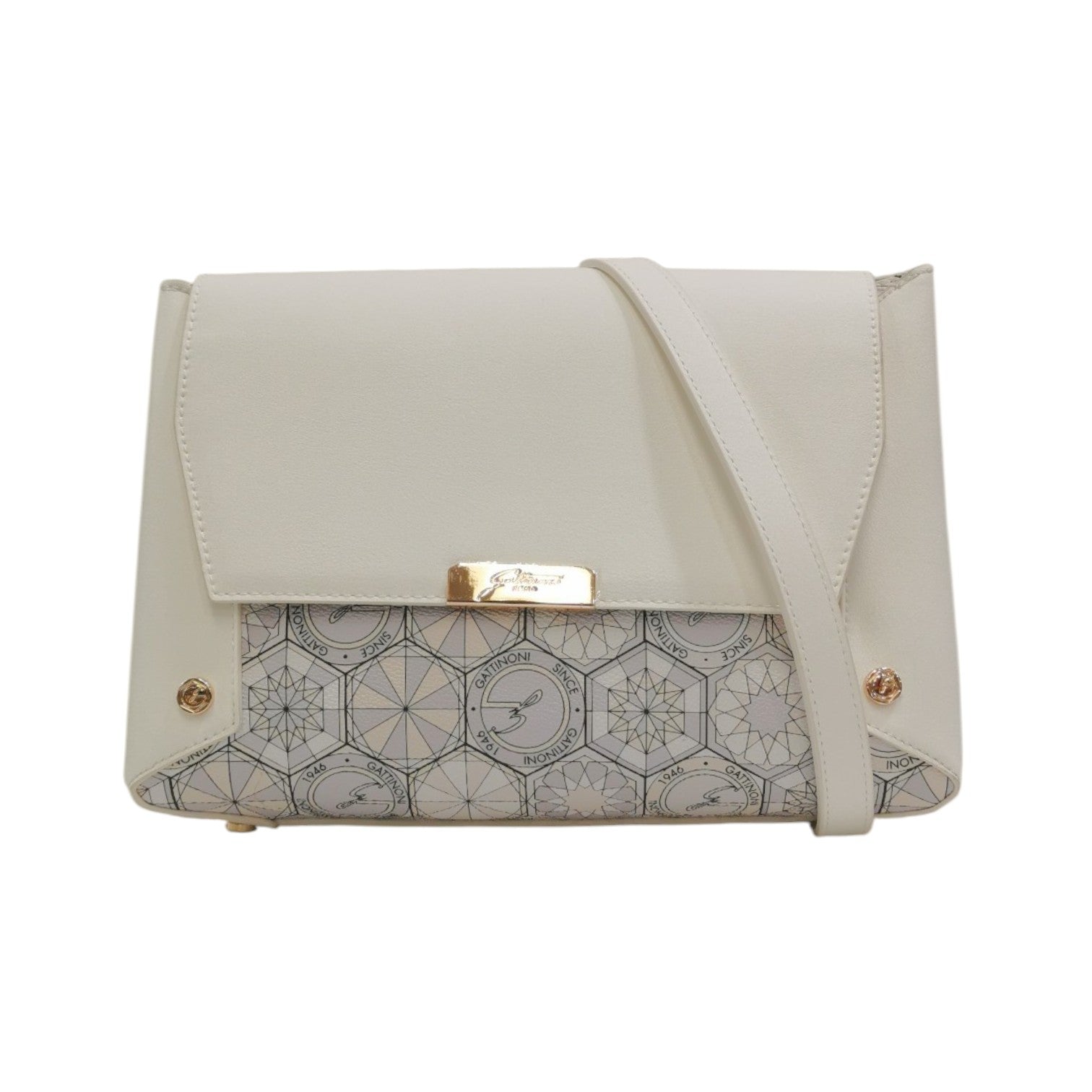Gattinoni Roma Borsa a Tracolla Donna in Stampa Teodosia Bianco e Chiusura con Bottone