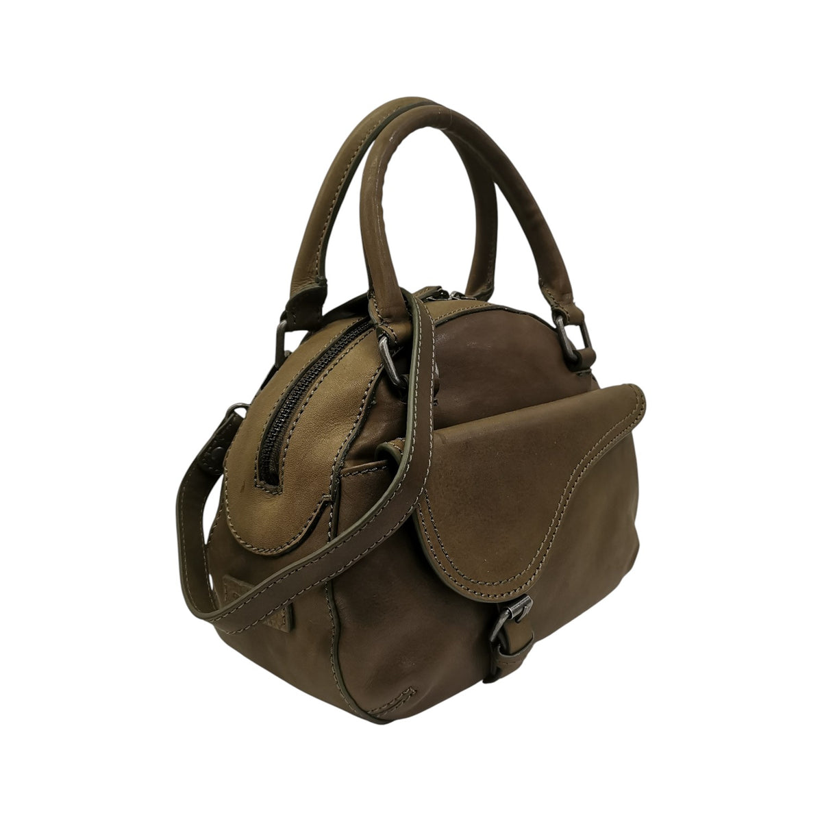 La Borsa a mano firmata Gianni Conti, realizzata in pelle con la sua silhouette morbida qui proposta nella variante pistacchio è caratterizzata da tasca frontale con cinturino come decorazione accompagnato da una chiusura a bottoncino magnetico, e presenta un scomparto chiuso con zip foderato in tessuto.