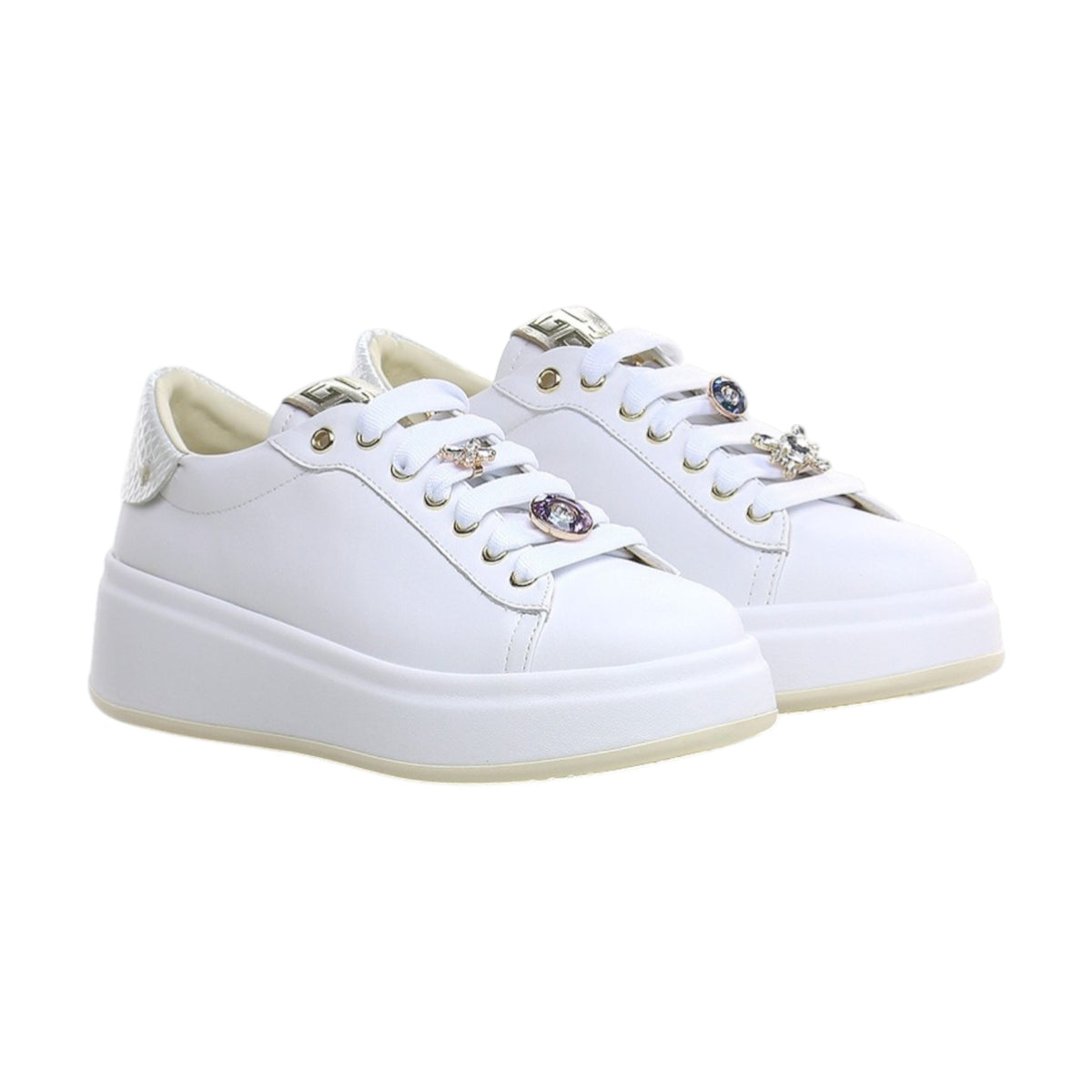 Gio+ Sneakers Platform Donna in Pelle Bianca con Charm Gioiello Removibili