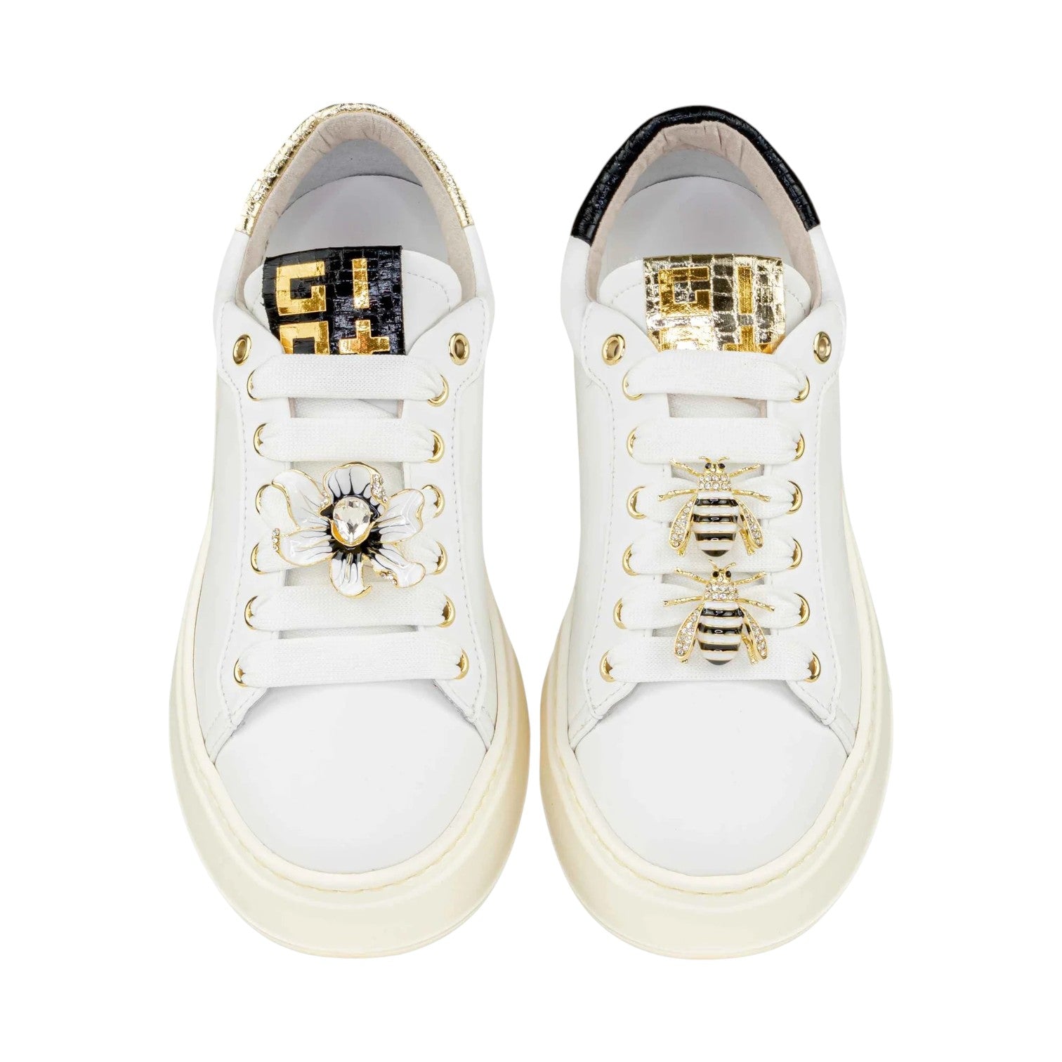 Gio+ Sneakers Platform Donna in Pelle Bianca Oro Laminato con Accessorio