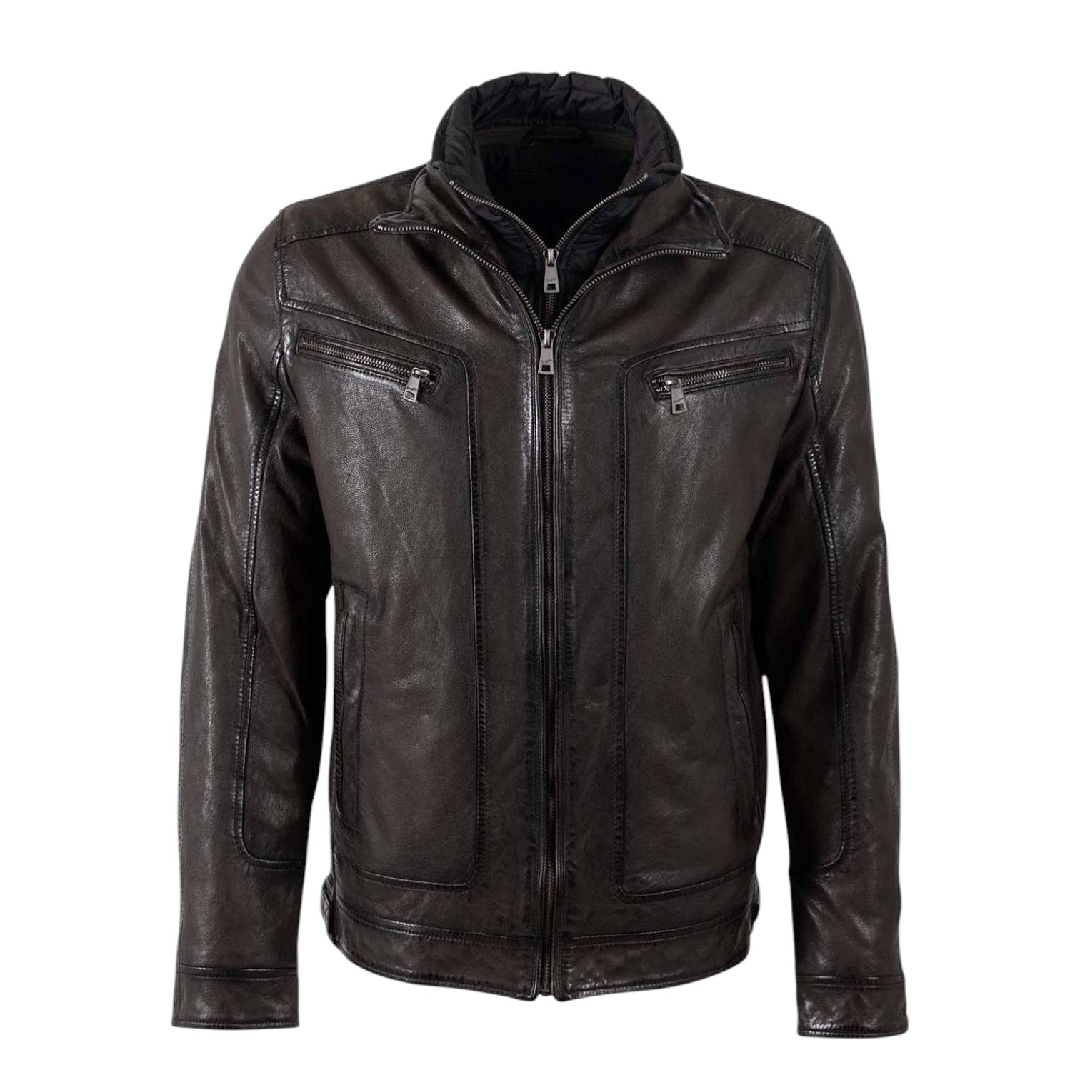 Il Giubbotto firmato Mauritius, realizzato in vera pelle nella variante moccha offre una vestibilità regolare e un design moderno. Presenta tasche frontali con cerniera e un inserto trapuntato nero rimovibile. Perfetta per aggiungere stile a qualsiasi look.