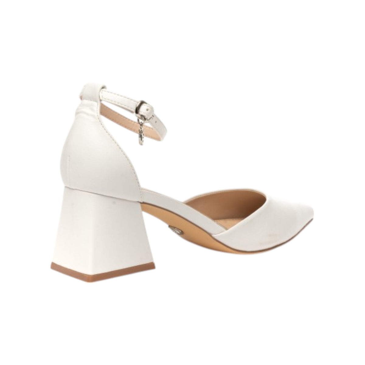 La Chanelle firmata Gold&Gold, realizzata in ecopelle bianca, è caratterizzata da punta chiusa davanti con soletta in vera pelle, con imbottitura di rinforzo nei punti in cui il piede esercita una maggiore pressione, caratteristica che rende la nostra scarpa particolarmente comoda e confortevole da indossare, il tutto su un fondo con tacco geometrico alto 6,5cm.