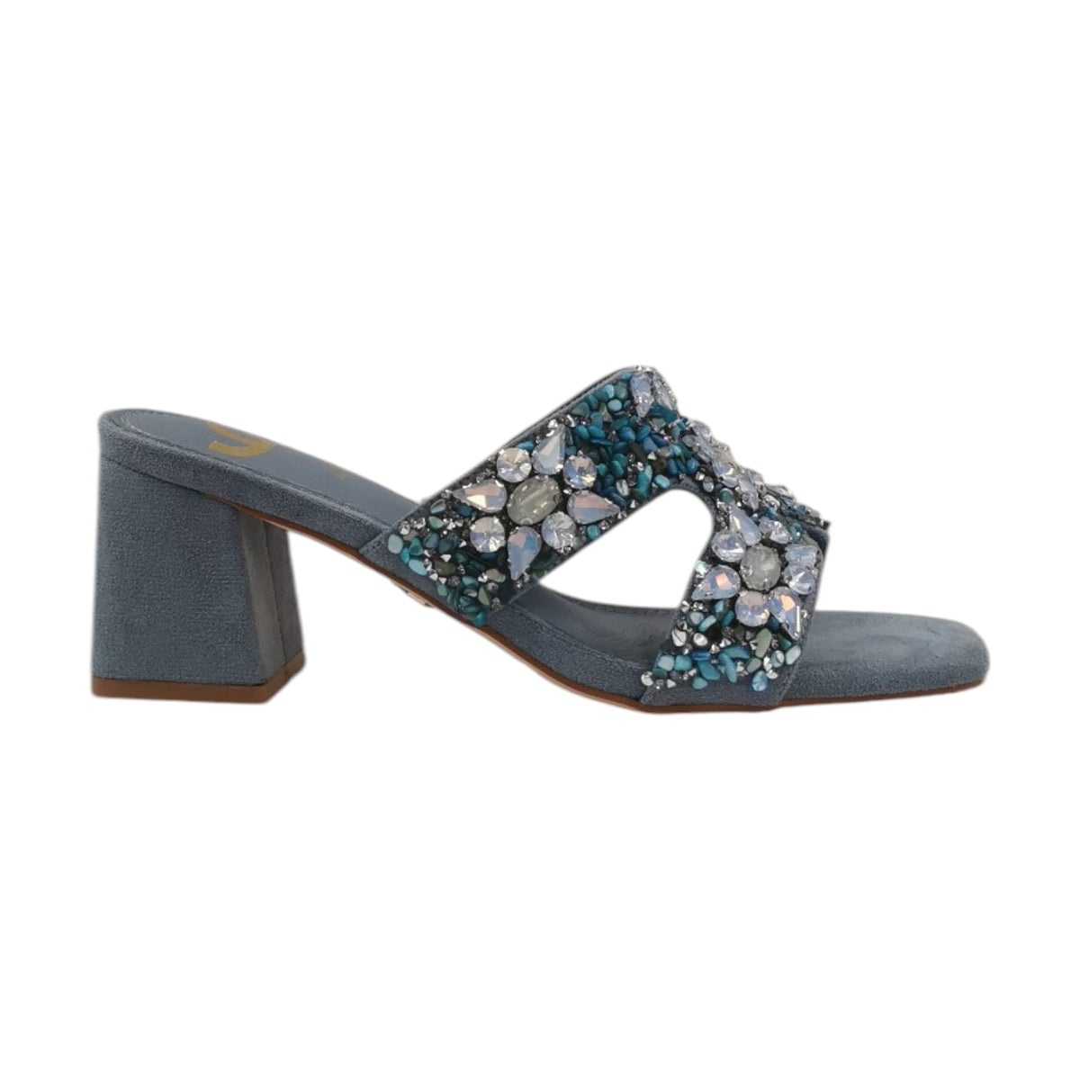 Lo Scalzato firmato Gold&Gold, realizzato in lussuoso camoscio, presenta una fascia frontale con eleganti pietre gioiello, un sottopiede imbottito in morbida pelle e un tacco alto da 7cm per un look esclusivo.