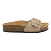 La Ciabatta firmata GoldStar, realizzato in pelle, presenta una fibbia sulla fascia frontale ed un sottopiede in pelle. Il plantare anatomico garantisce una buona stabilità del piede, anche grazie al supporto sull' arco plantare. Il rialzo per l'appoggio delle dita offre loro una naturale posizione; lateralmente invece, il rialzo serve per il contenimento del piede e per un maggior comfort ed equilibrio.