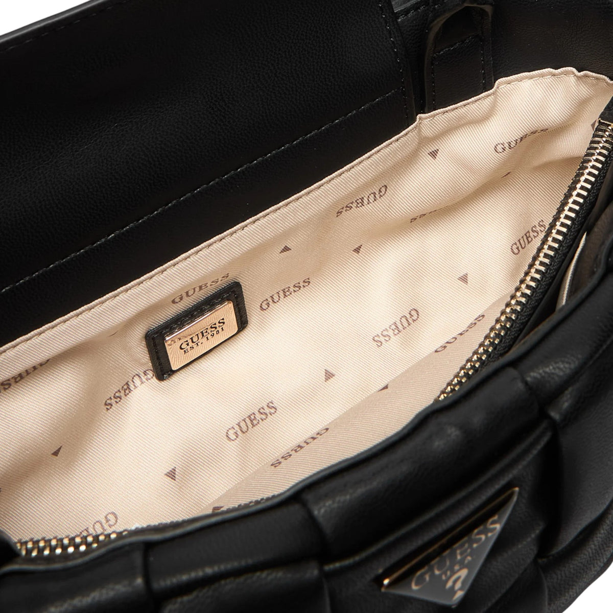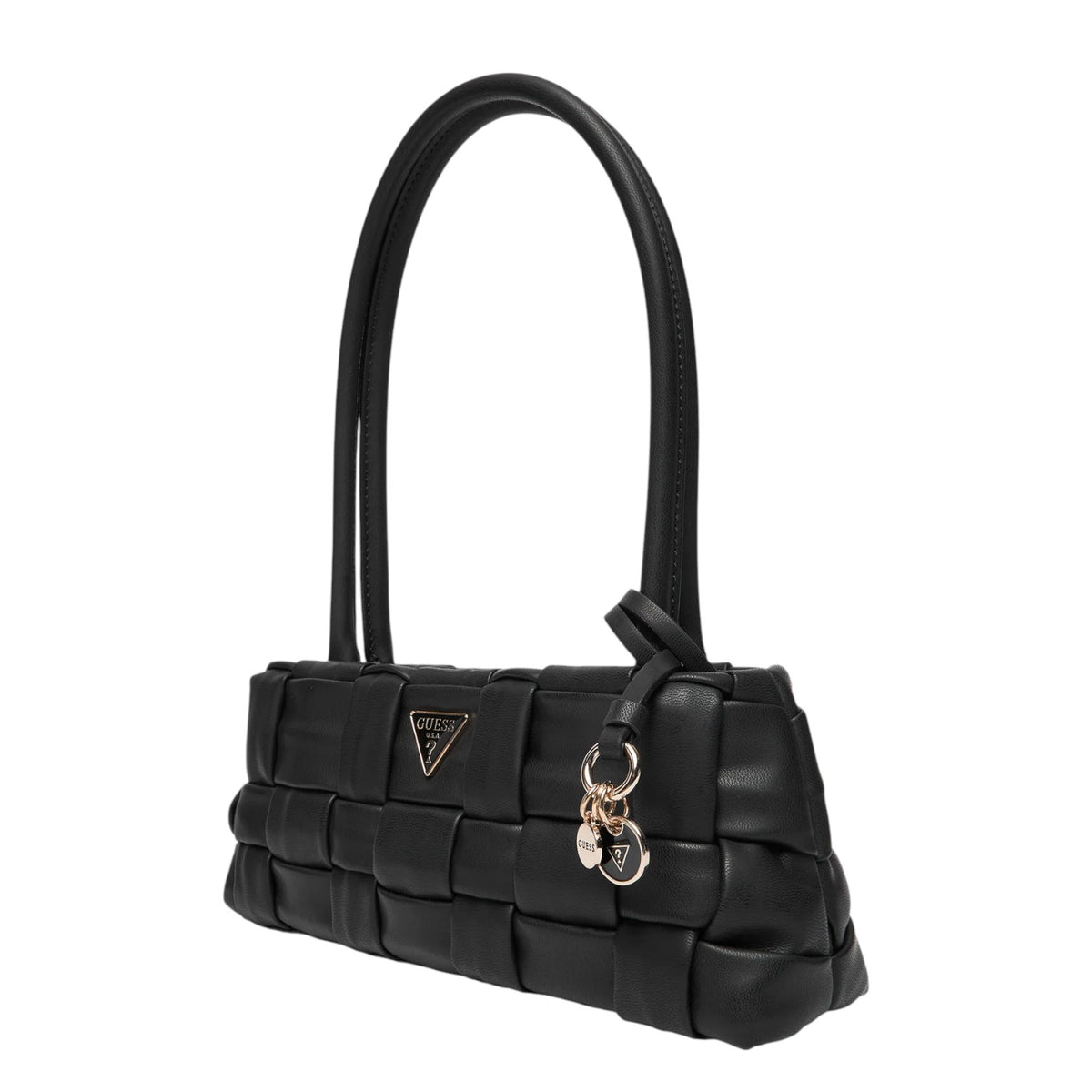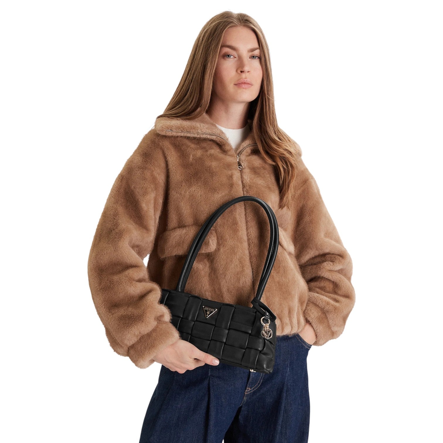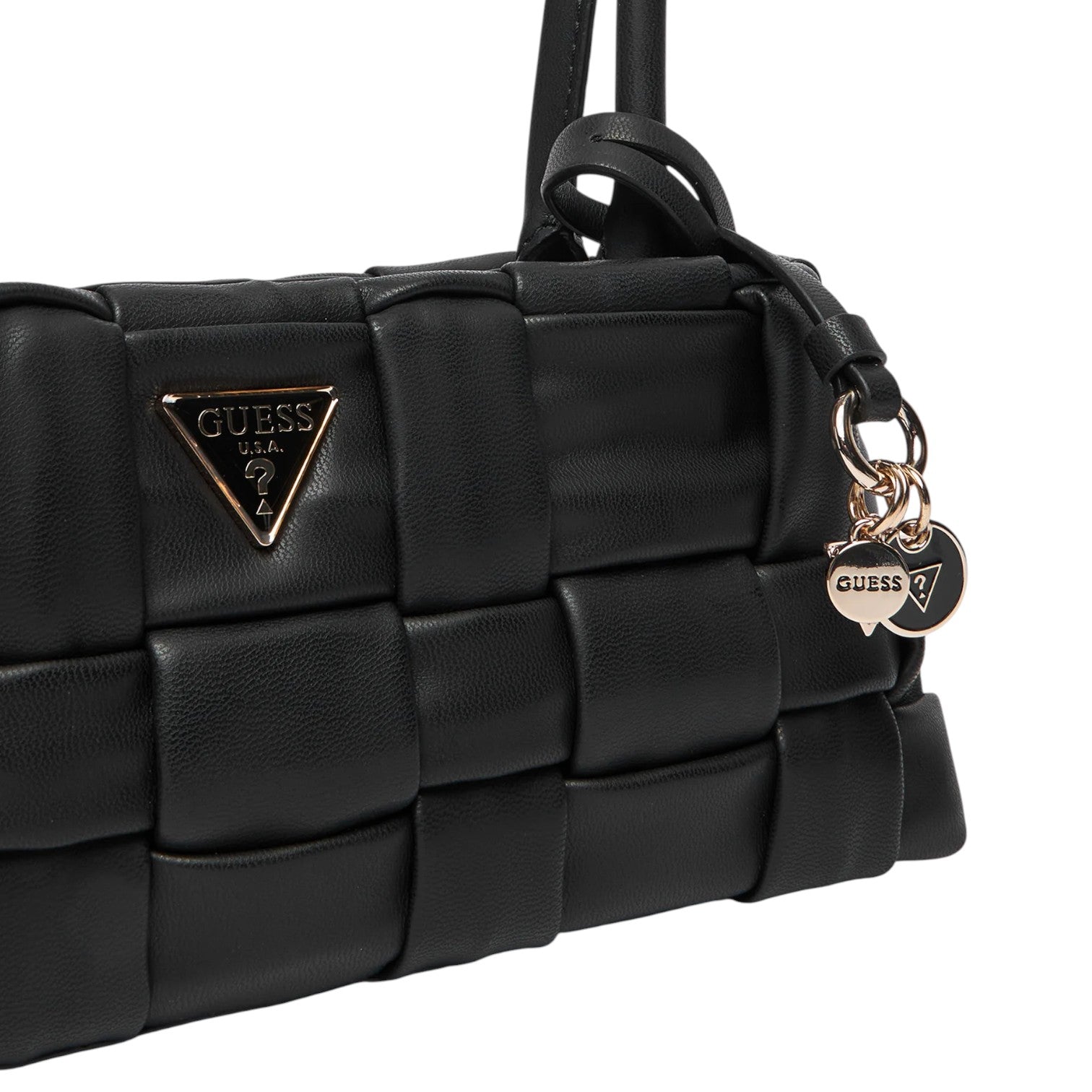 Guess Borsa a Spalla Donna Marion in Ecopelle Intrecciata Nera con Manici Lunghi