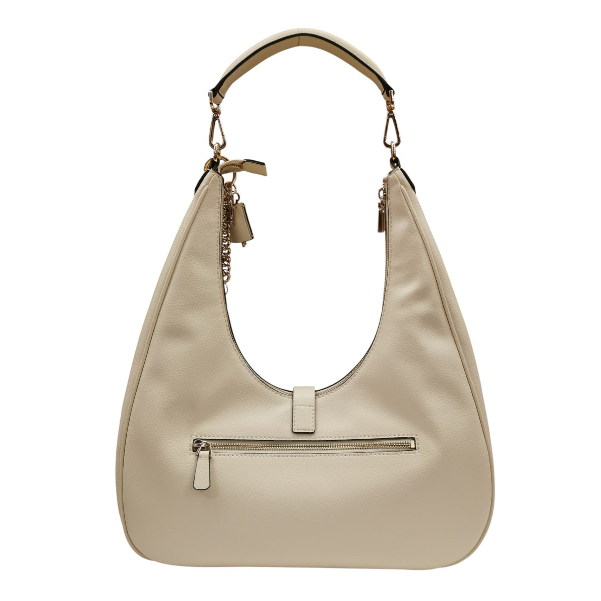 La Borsa a spalla firmata Guess, realizzata in ecopelle qui proposta nella variante bianca è caratterizzata da dettagli metallici e da charm con logo staccabili. Presenta una fodera interna personalizzata con logo ed una comodissima tasca posteriore e interna con zip.