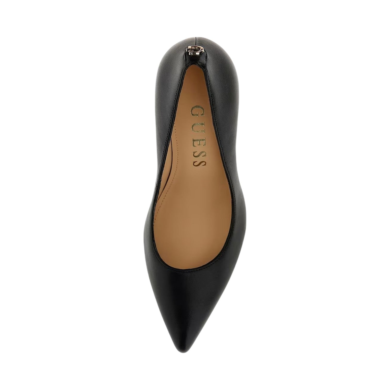 Il Décolleté firmato Guess, modello a punta affusolata realizzato in pelle è caratterizzato da dettaglio in metallo scritta logo sul retro e da un sottopiede in pelle e fodera interna in ecopelle, con un tacco a stiletto alto 9cm.