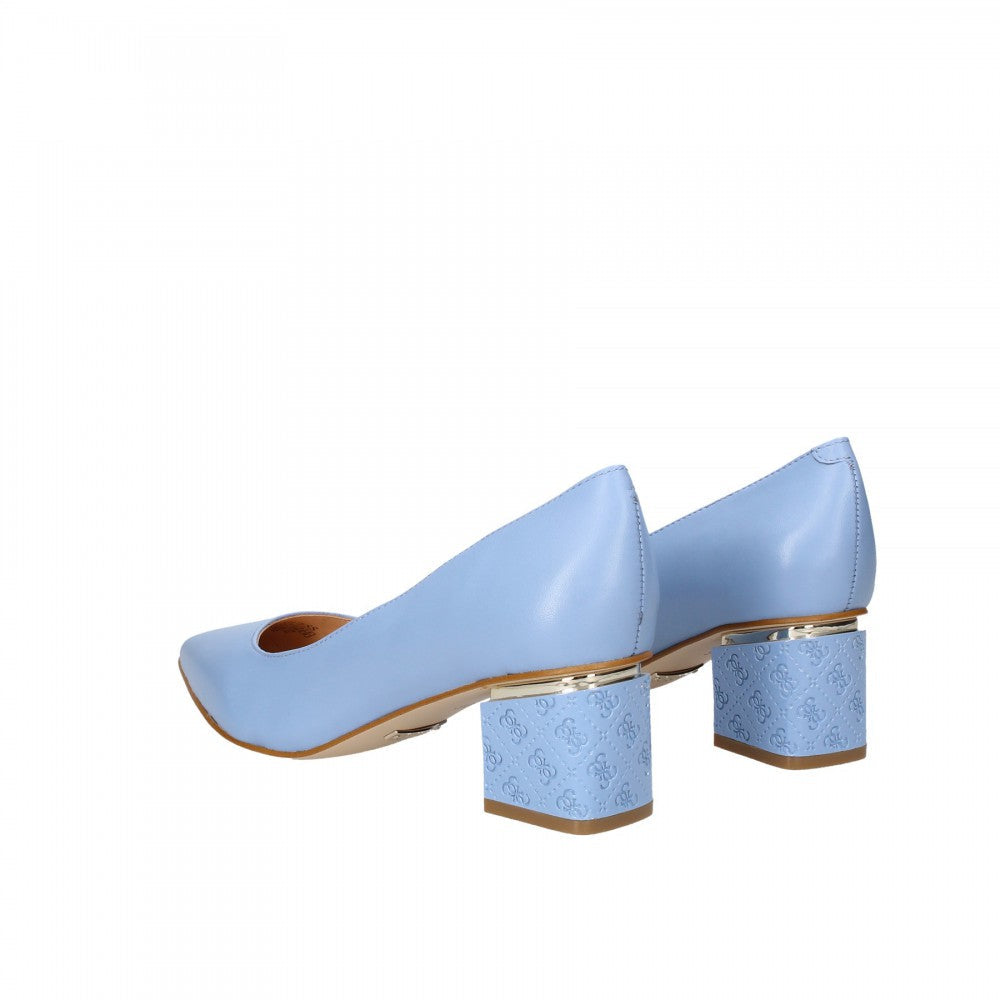 Il Dècollèttè firmato Guess, silhouette femminile e classica per un look elegantissimo disponibile nella variante celeste/rosa, spiccheranno grazie al tacco con impresso il simbolo 4G del brand.