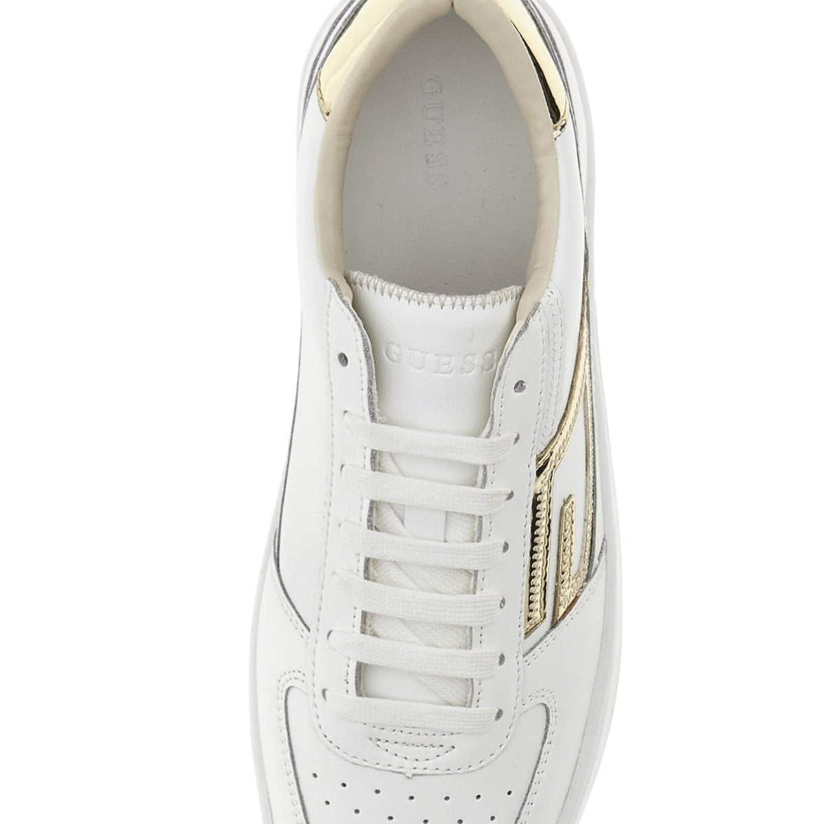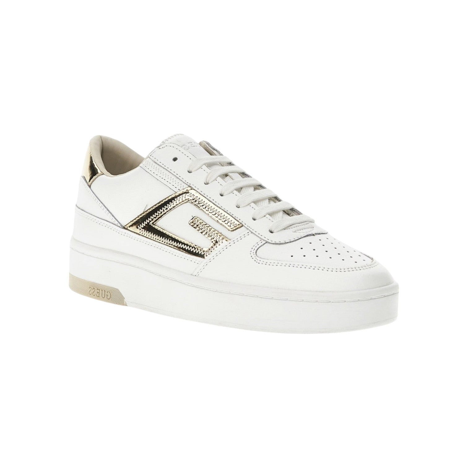 La Sneaker firmata Guess, realizzata in pelle presenta logo laterale dorato laminato con dettaglio cuciture zig zag e scritta logo frontale e laterale. Sneaker dotata di morbido