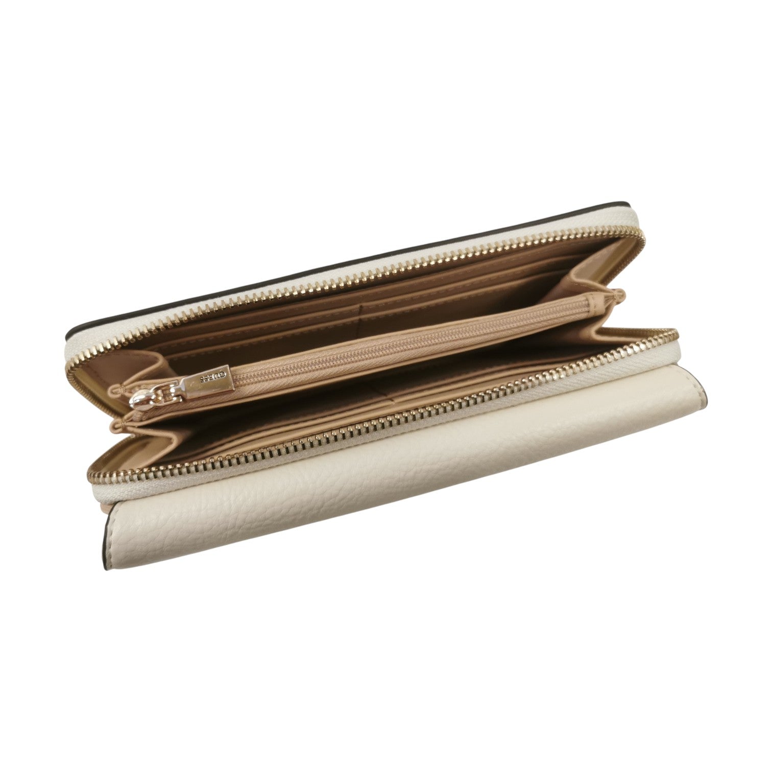Il Portafoglio firmato Guess, realizzato in ecopelle qui proposto nella bellissima variante bianca è caratterizzata da scritta logo frontale in metallo e da 26 scomparti portatessere, all'interno troviamo scomparto per le monete con zip e per le banconote.