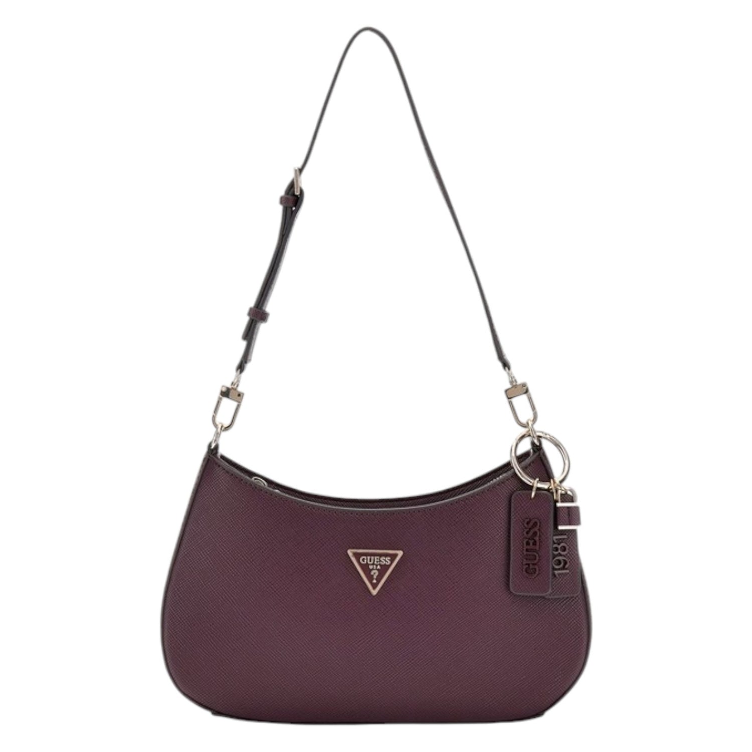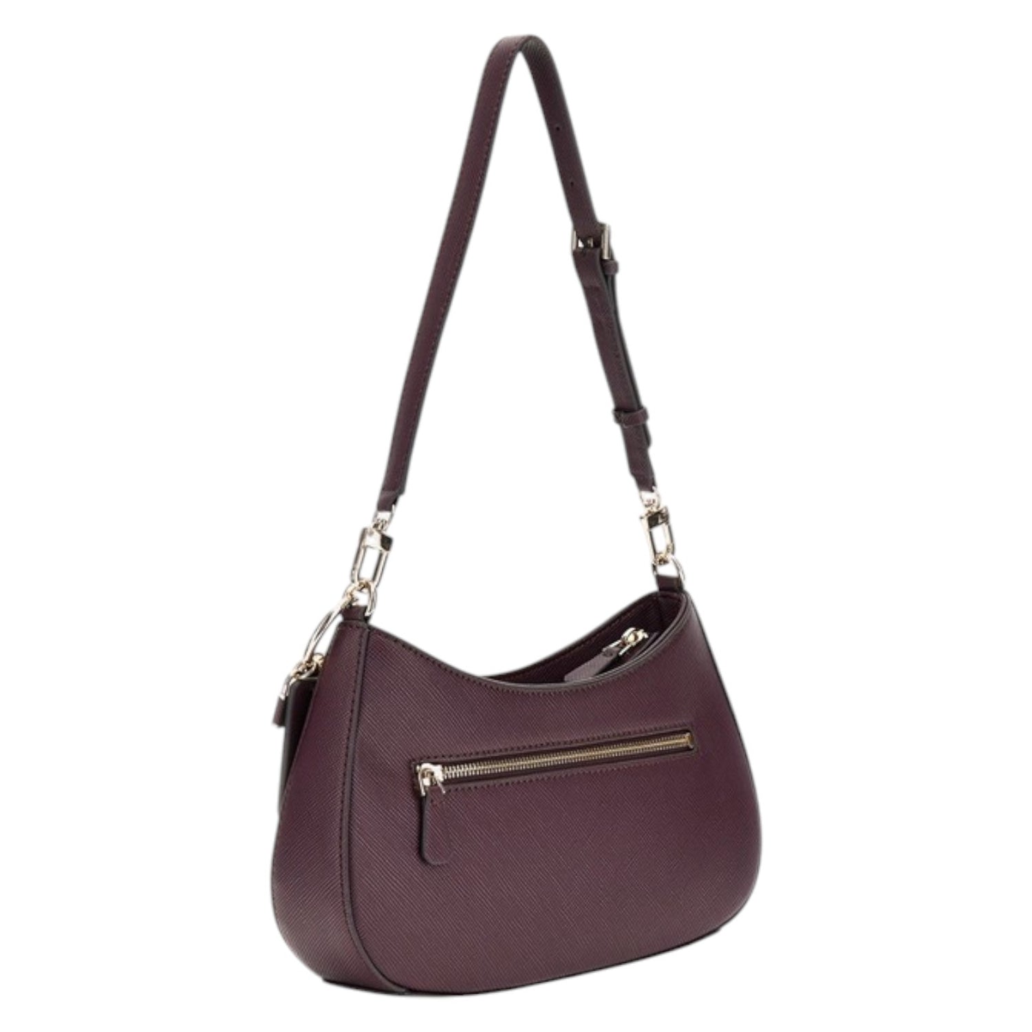 La Borsa a spalla firmata Guess, realizzata in ecopelle è caratterizzata da una lavorazione saffiano e da comodo manico removibile e regolabile, inoltre presenta un charm logato alla base del manico e l'interno foderato in tessuto di cui dispone di tasca con zip e taschini porta tessere.