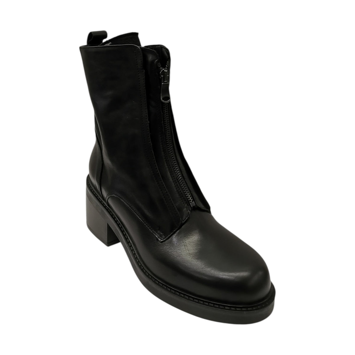 Helena Baker Marta Stivaletto Donna in Pelle Nero con Zip Frontale e Tacco Largo Alto 60mm